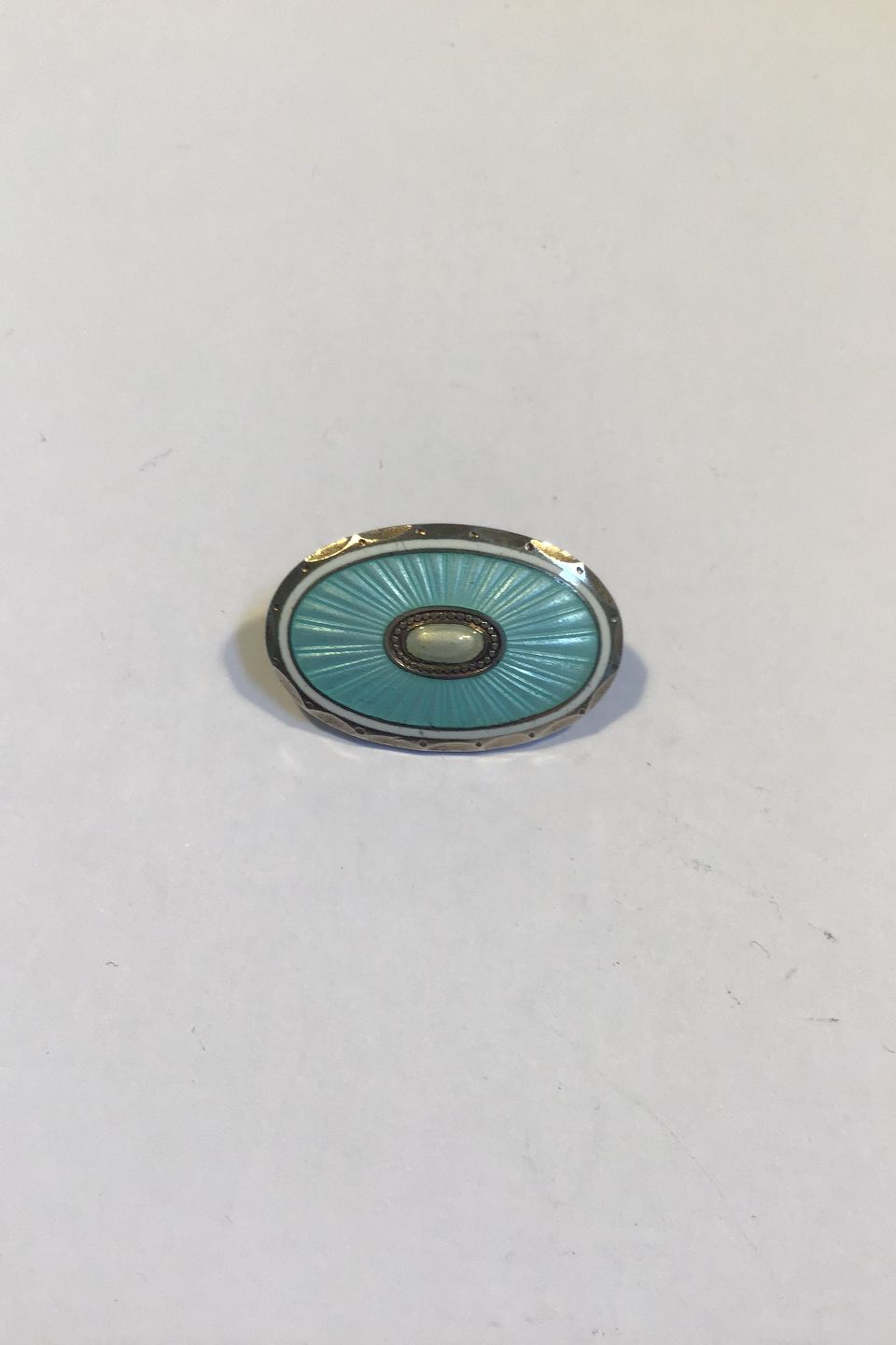 S.L. Jacobsen Sterling Silver Brooch with enamel/guilloche Measures 2.0 cm x 3.1 cm/0.78" x 1.22" Weight 6.2 gr/ 0.22 oz