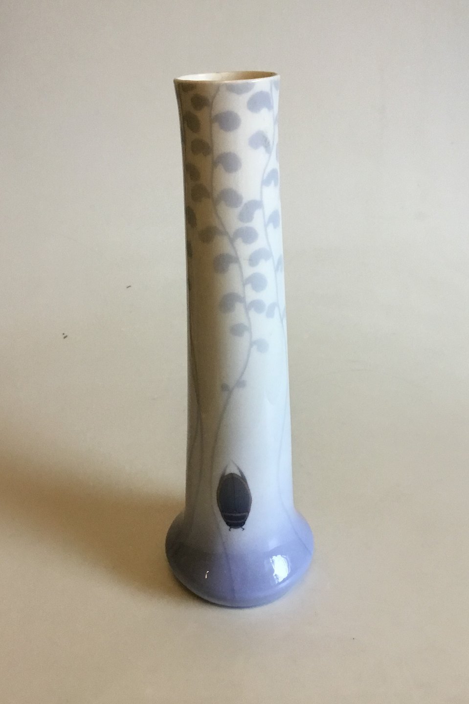 Royal Copenhagen Art Nouveau Unique Vase No 7258. Designed by Stephan Ussing. Decorated with Beetles. Measures 35.5 cm / 13 31/32 in. From Oct. 1899