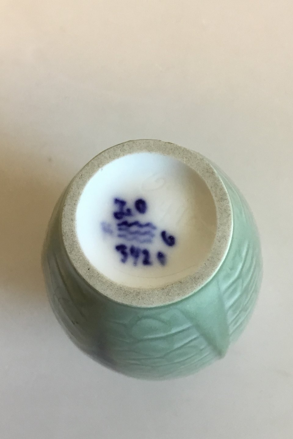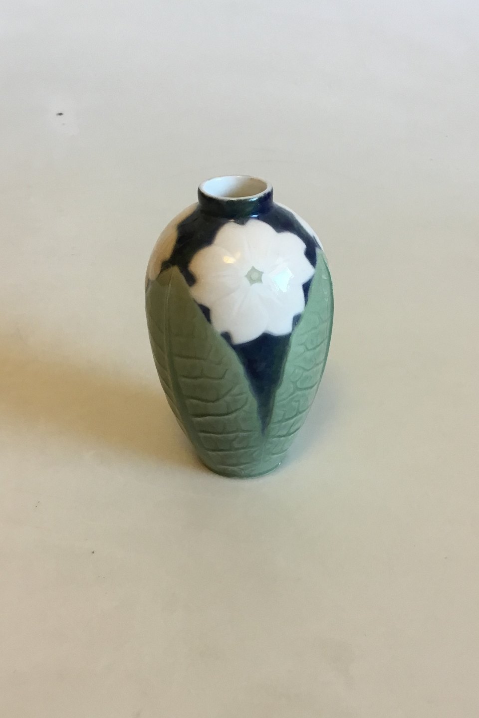 Royal Copenhagen Unique Art Nouveau Vase. Designed by Johanne Louise Oppermann, June 1892. Measures 10.3 cm / 4 1/16 in. Little Chip on the bottom edge.