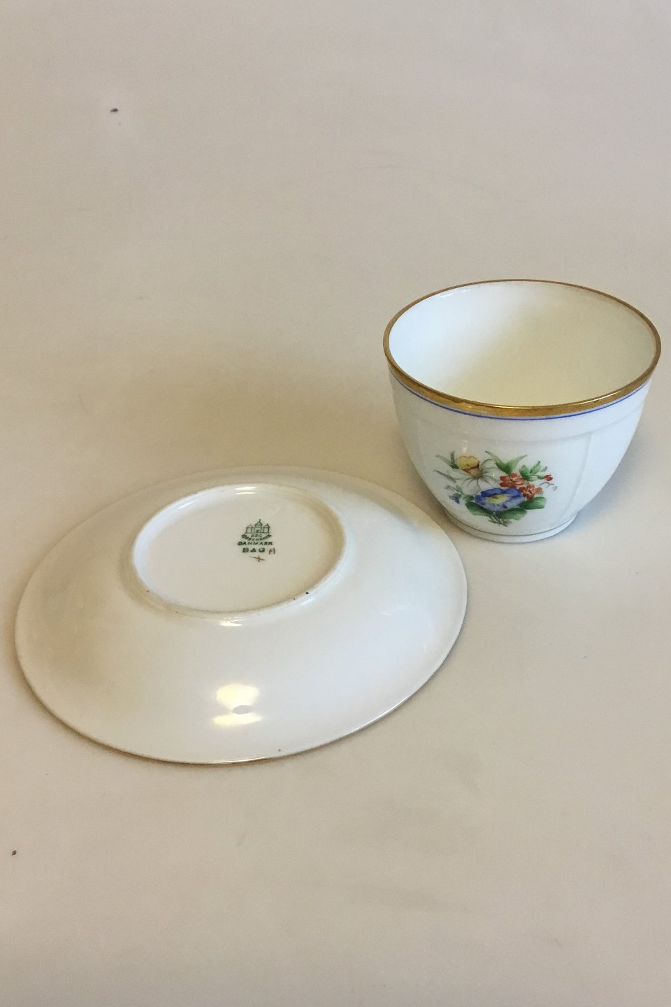 Bing & Grondahl Herregaard Coffee Cup and Saucer No 102. Measures Cup: 6 cm / 2 23/64 in. x 8 cm / 3 5/32 in. Saucer: 13.5 cm / 5 5/16 in.