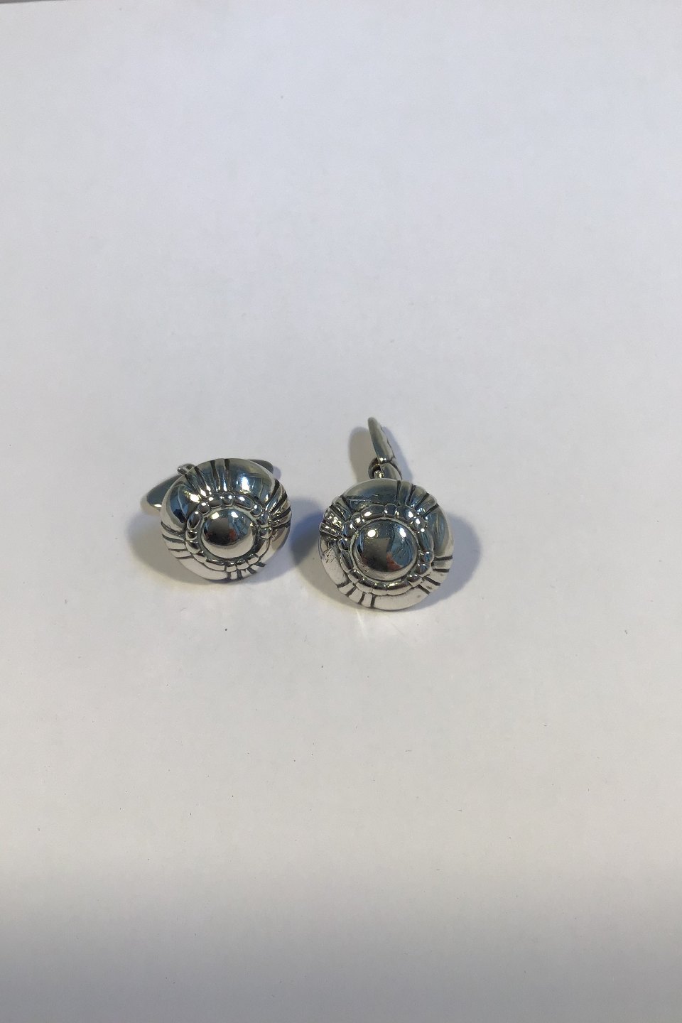 Georg Jensen Sølv Manchetknapper No 24. Måler 1,9 cm diameter. Vejer tilsammen 10 gram. Produceret 1915-1930.