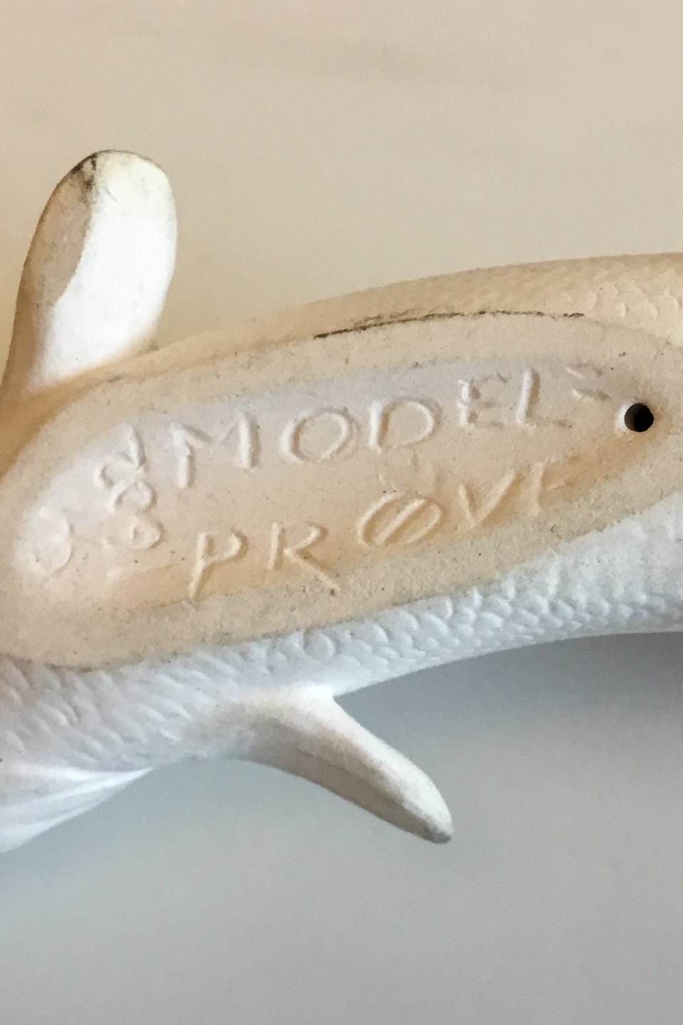 Royal Copenhagen Prøvemodel af figur af Laks No 1602. Designet af Knud Møller. Måler 12 cm