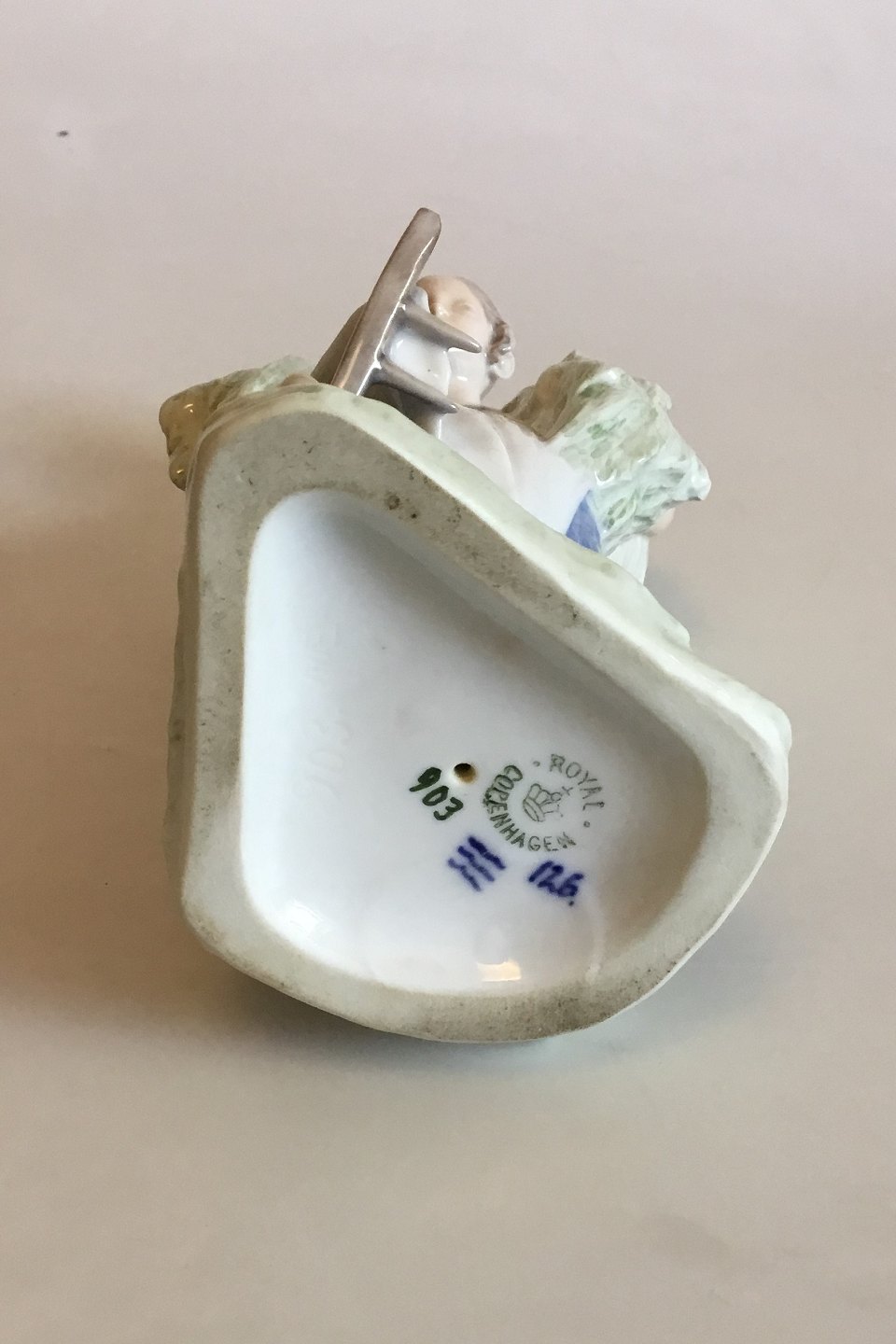 Royal Copenhagen Figur af Kvinde med hø og rive No 903. Designet af Chr. Thomsen. Måler 21 cm