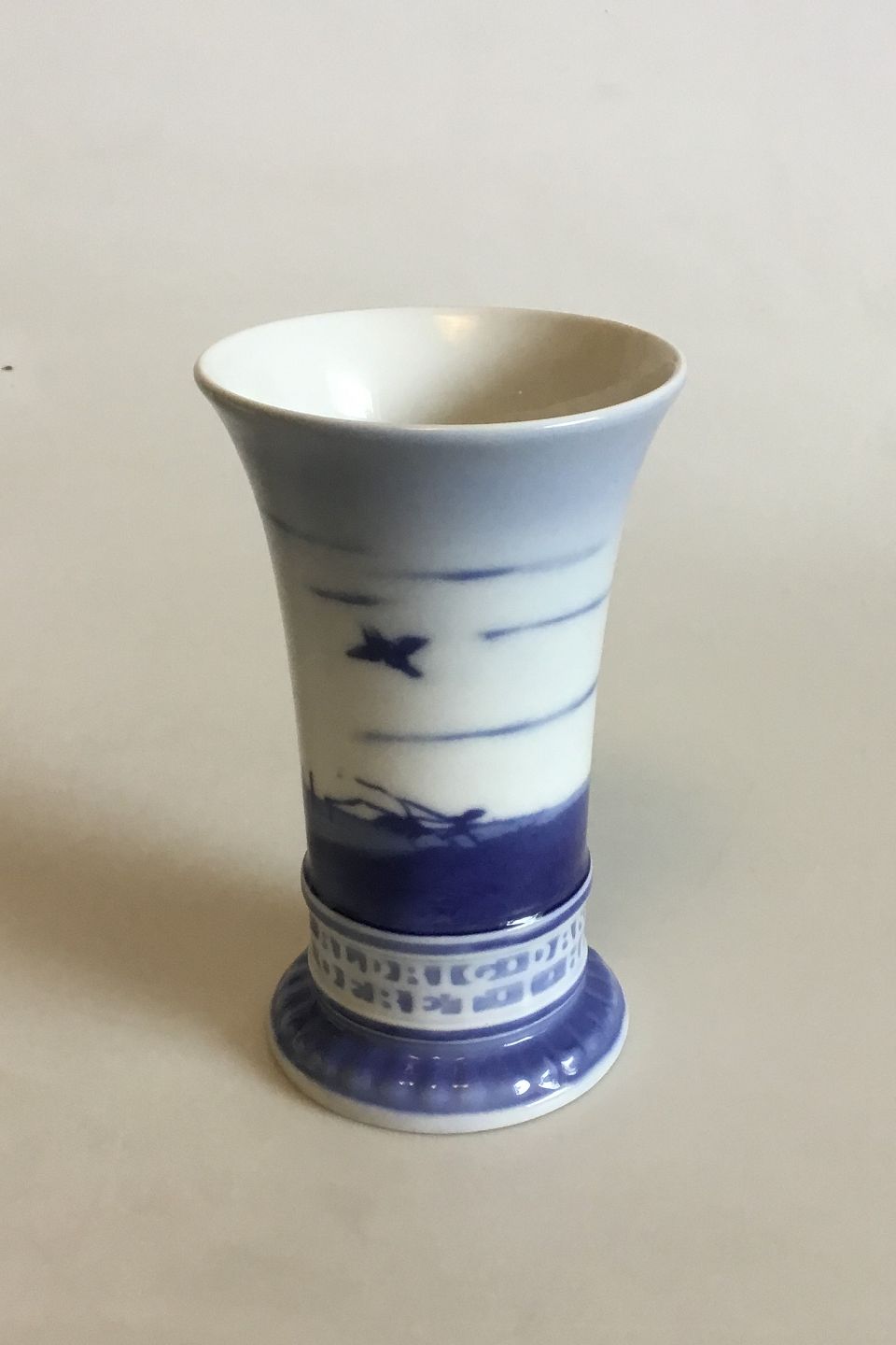 Royal Copenhagen Vase. Inscription: "Danmark glemmer aldrig ofre I har bragt". Measures 14 cm / 5 33/64 in.