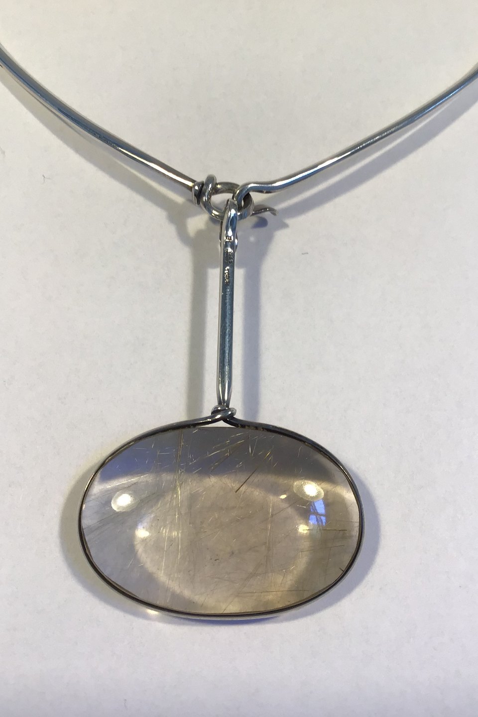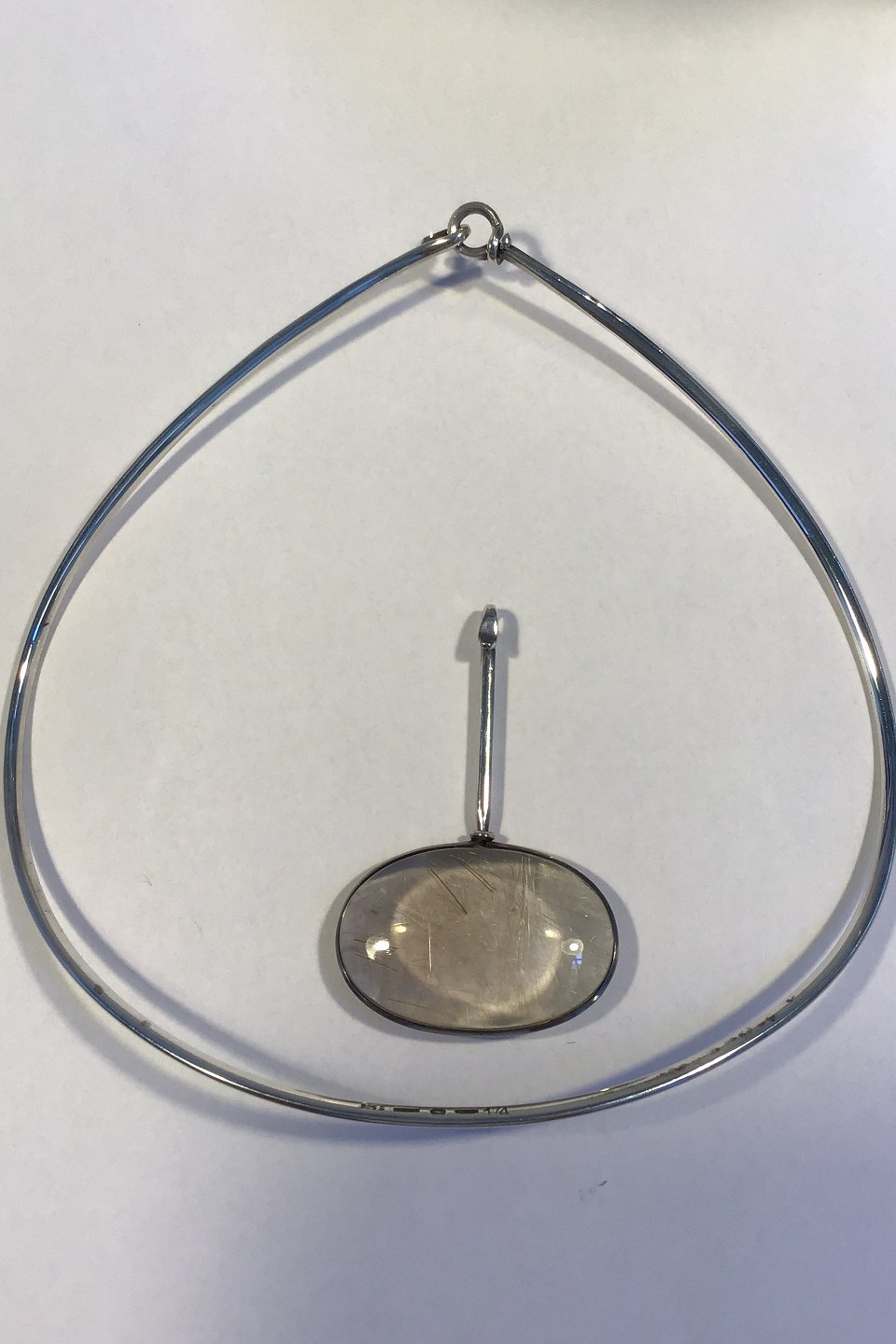 Georg Jensen Sterling Silver Torun Neckring No 174 Measures 14 x 14 cm(5.51 in x 5.51 in) with Torun Pendant No 133 with Rutile quartz.H 7 cm(2.75 in) W 4,5 cm( 1.77 in) Weigth 21.4 gr /0.75 oz