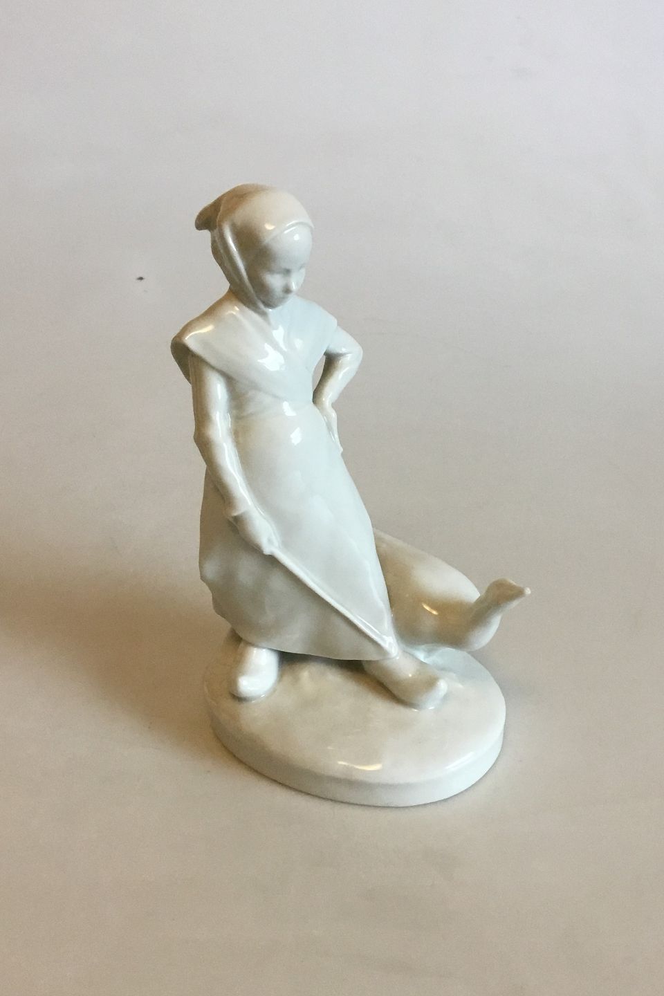 Royal Copenhagen Blanc de Chine Figur af Pige med gås No 528. Måler 18 cm