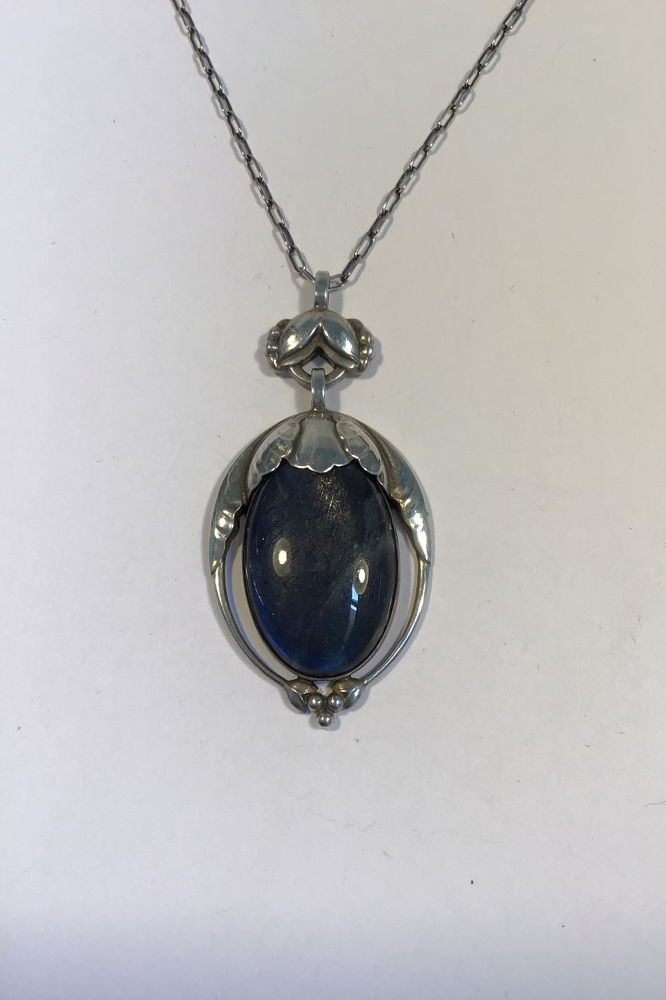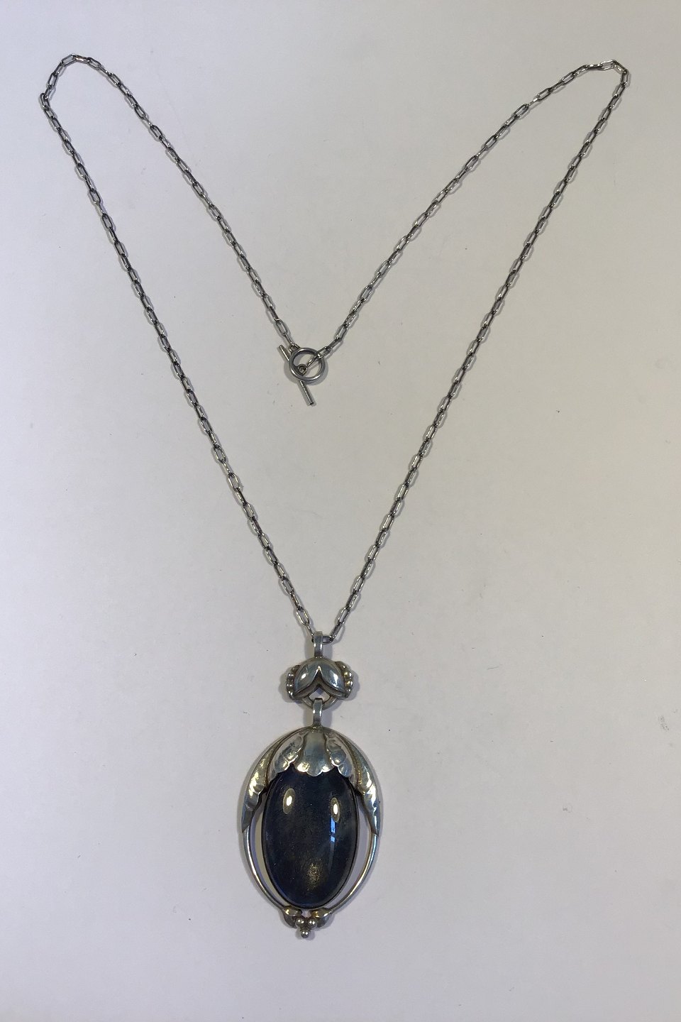 Georg Jensen Silver Necklace w Pendant No 54 (1915-1927) Labradorite L 6.5 cm(2.55 in) Weight 15 gr/0.53 oz (Chain 60 cm/23.62 in)