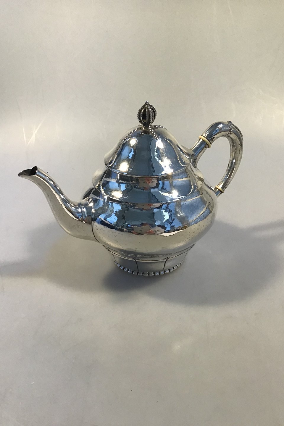 Danish Silver Tea Pot (1925) Pearl border and finial shaped as crown H 17.5 cm (6.88 in)Weight 427 gr /13.74 oz