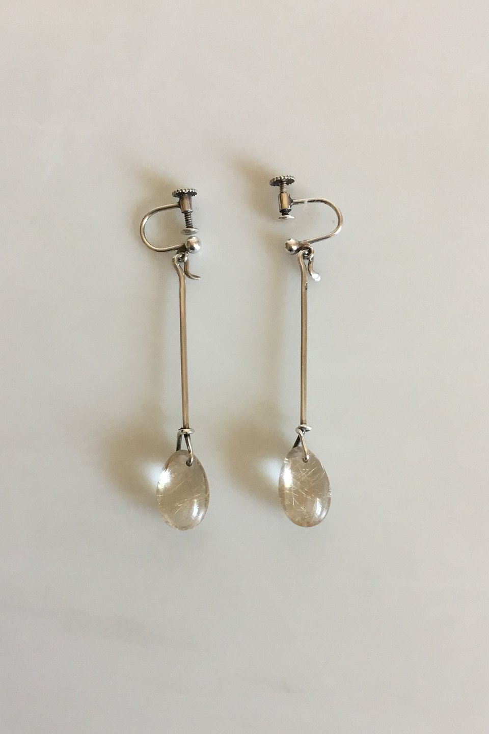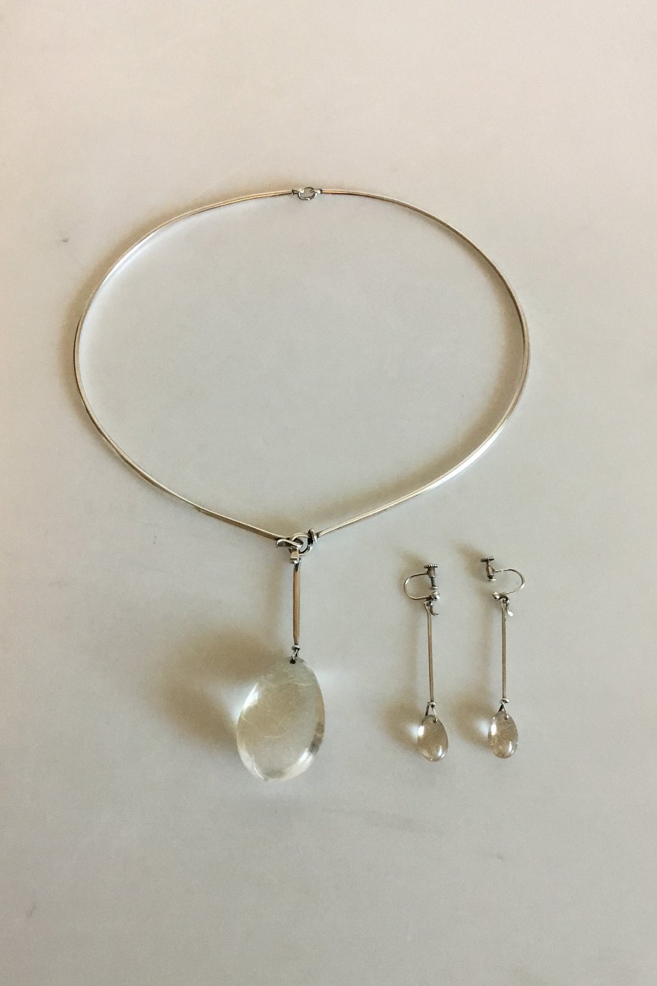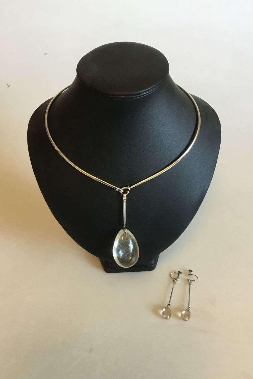 Georg Jensen Sterling Silver Set consisting of Neck Ring No 114 with Pendant of Rutil Quartz No 131 and associated Earrings with Screw lock. Designed by Vivianna Torun Bülow-Hübe. Measures Pendant: 8 cm / 3 5/32 in. Earrings: 5.5 cm / 2 11/64 in.