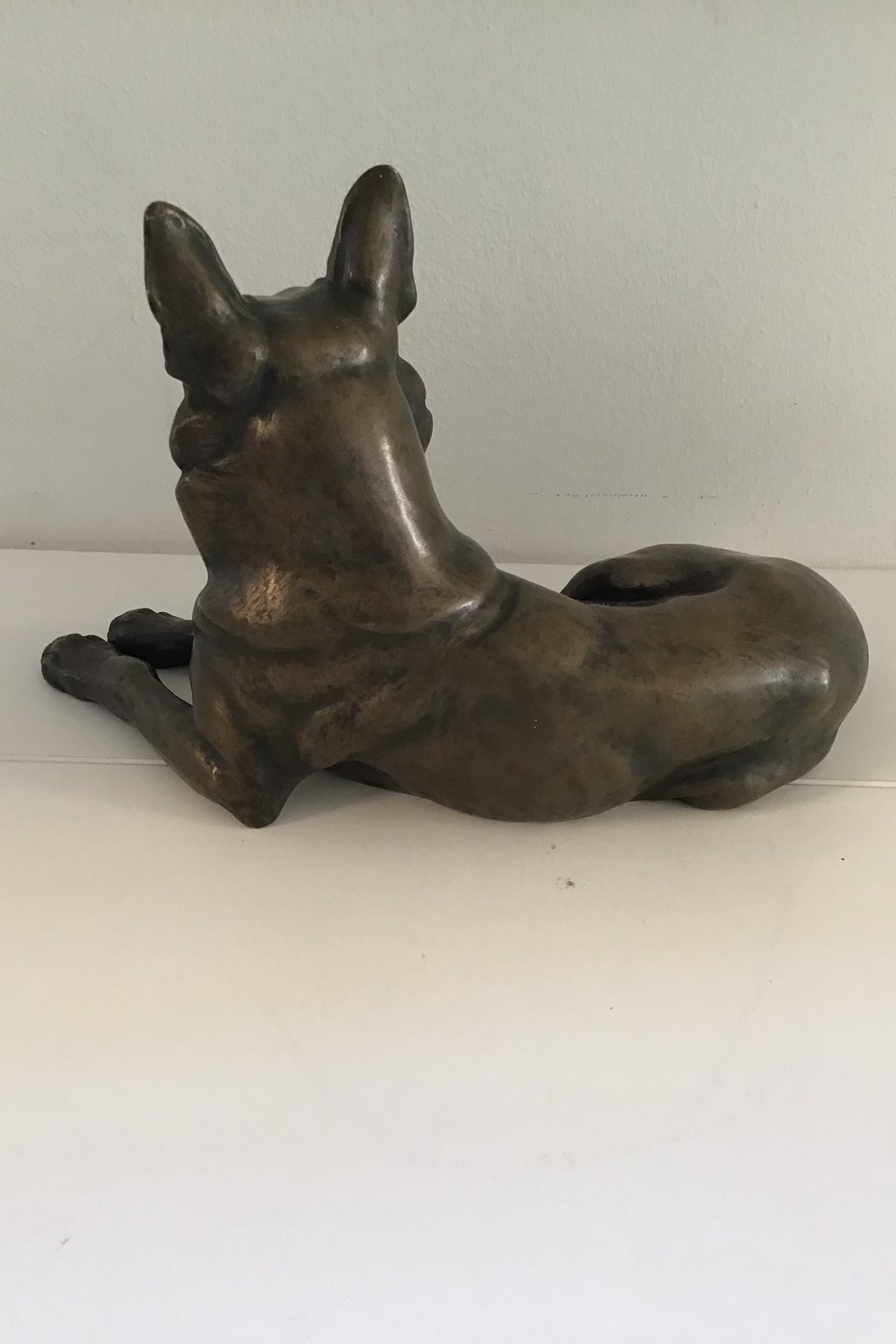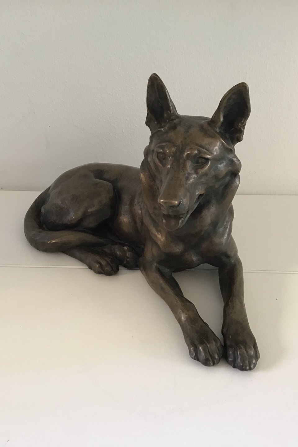 Dansk Kunsthandel(Danish Arttrade) Lauritz Jensen Lying German Sheperd Bronze Model No 1, limited edition number 10 Measures H 18.5 cm (7.28 in) x L 31 cm(12.20 in)