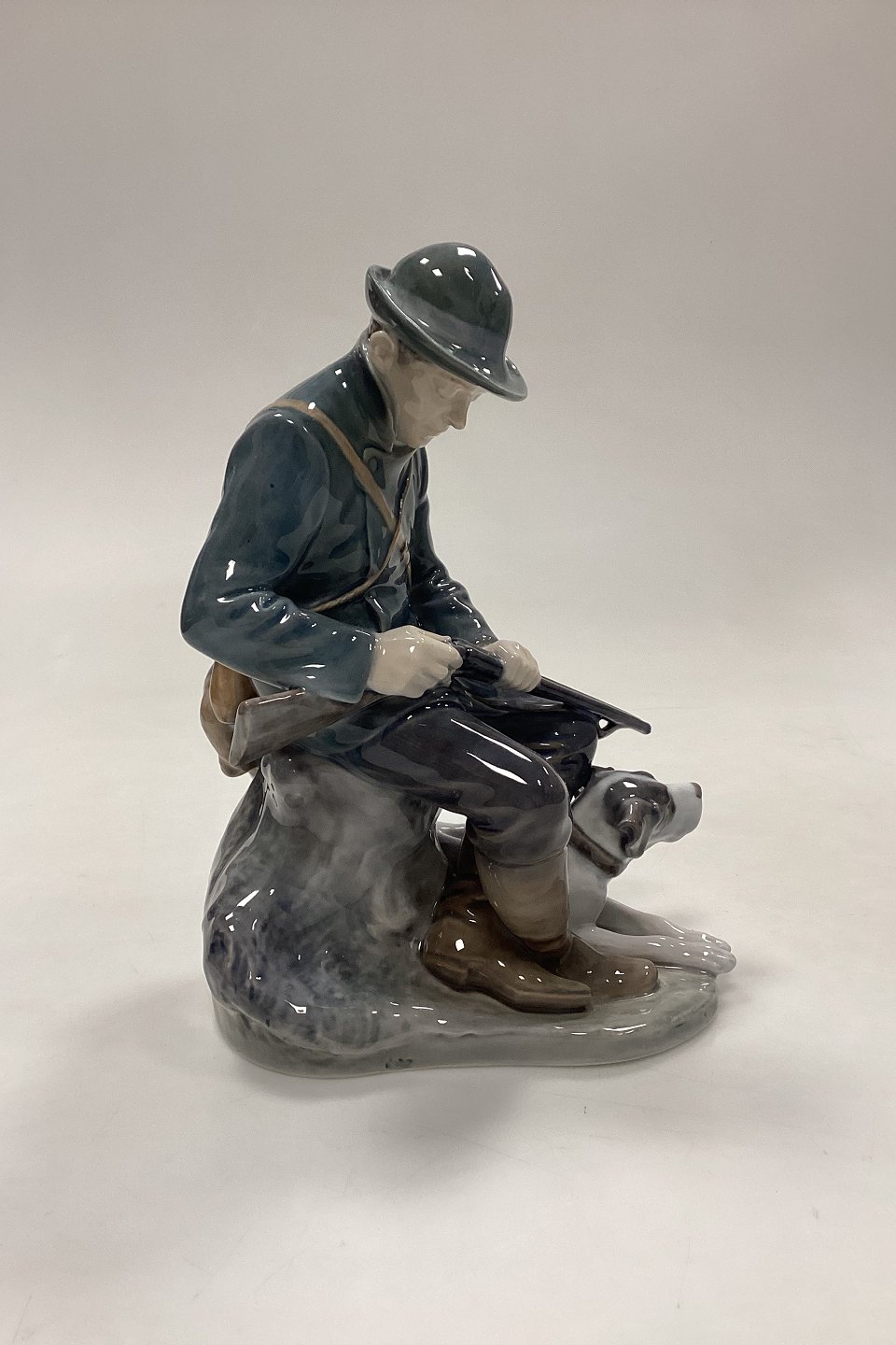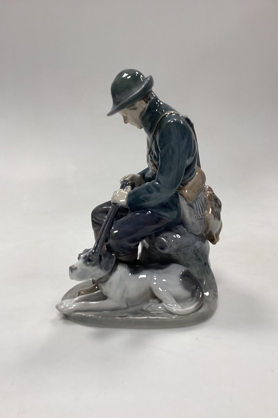 Royal Copenhagen Figurine - Hunter with Dog No. 1087. Designed by Christian Thomsen. Measures 20 cm x 10 cm / 7.87 in. x 3.93 in.