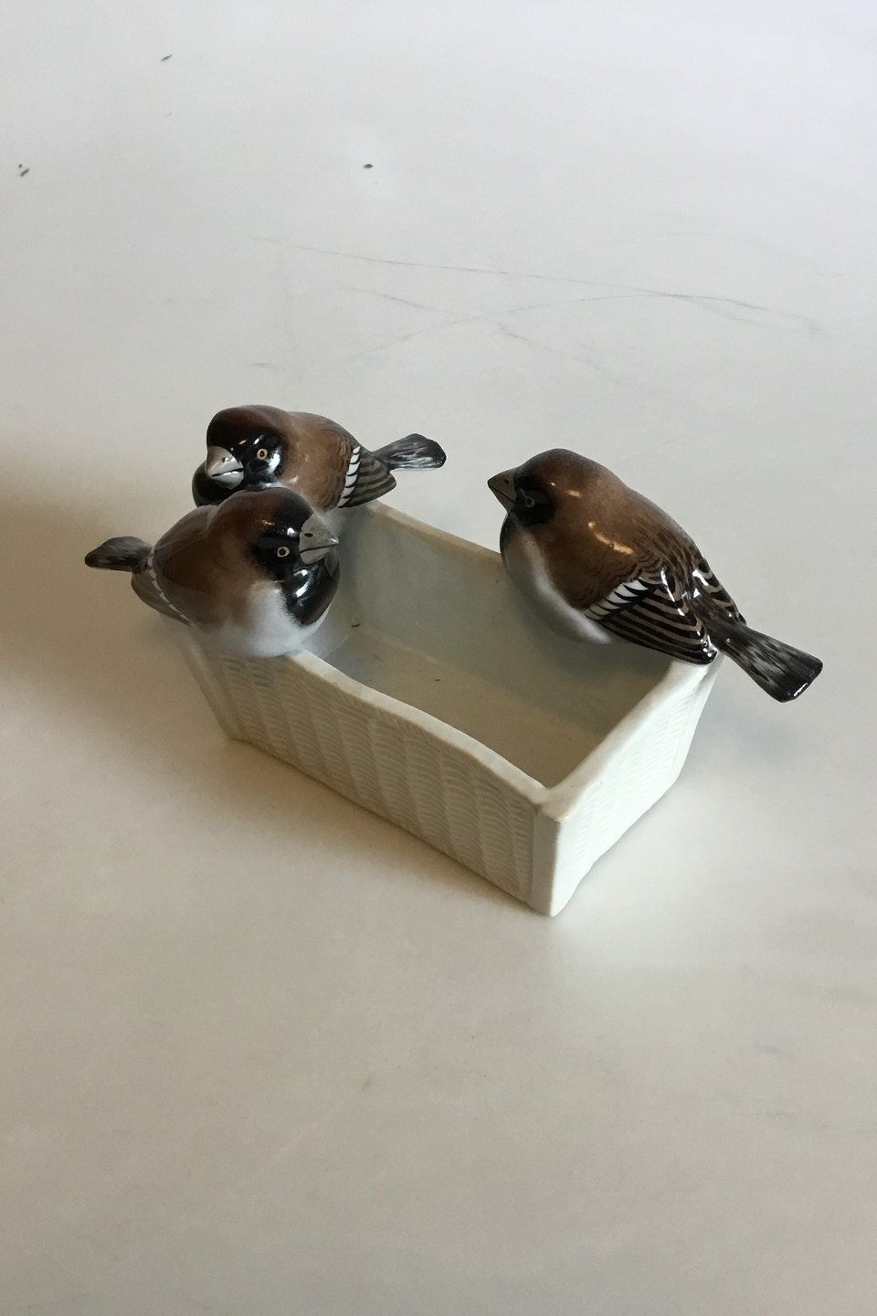 Faience Small Jardiniere with Three Sparrows. Measures 20 cm / 7 7/8 in.
