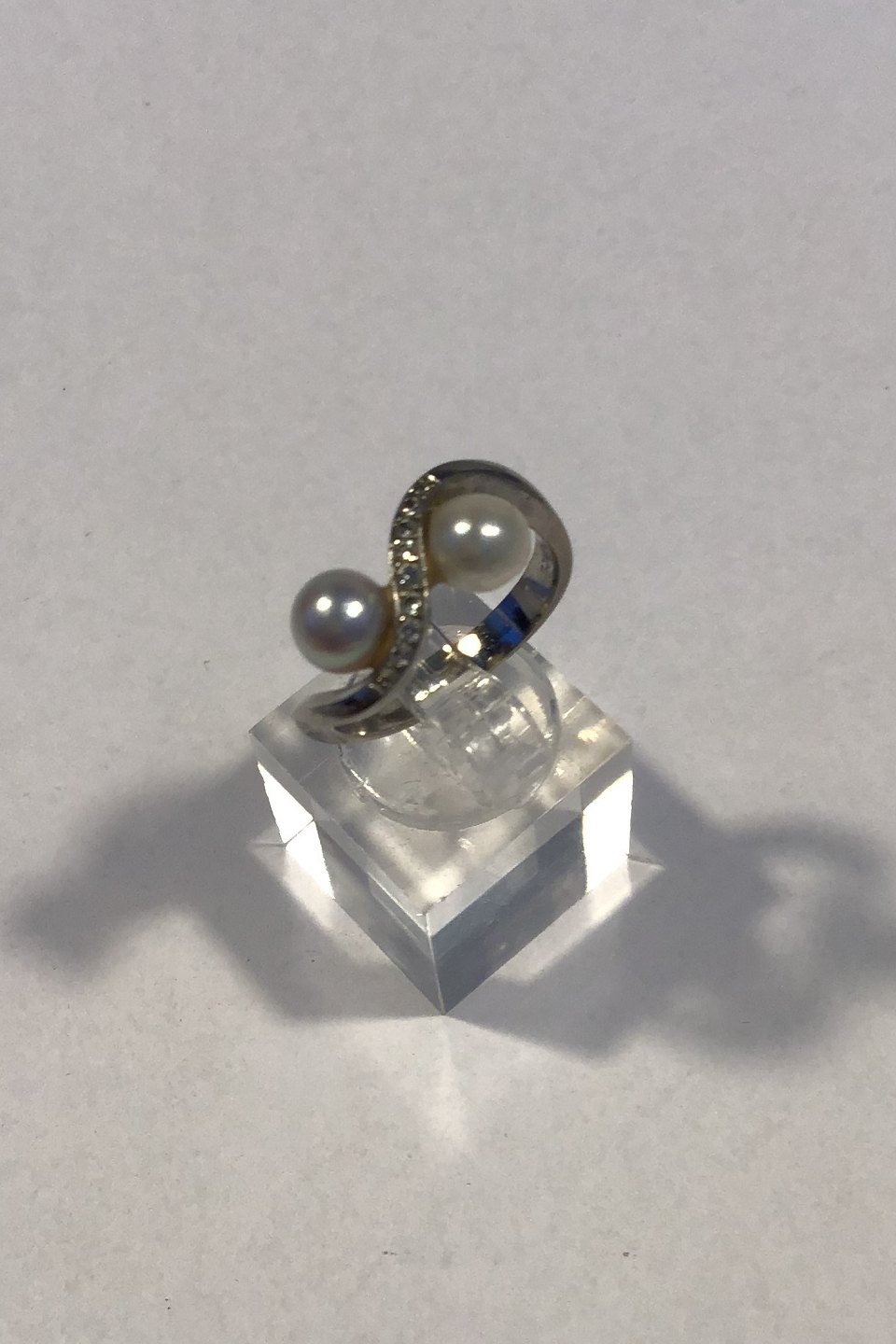 Georg Jensen and Wendel 18K Whitegold Ring with Pearls and Brillants