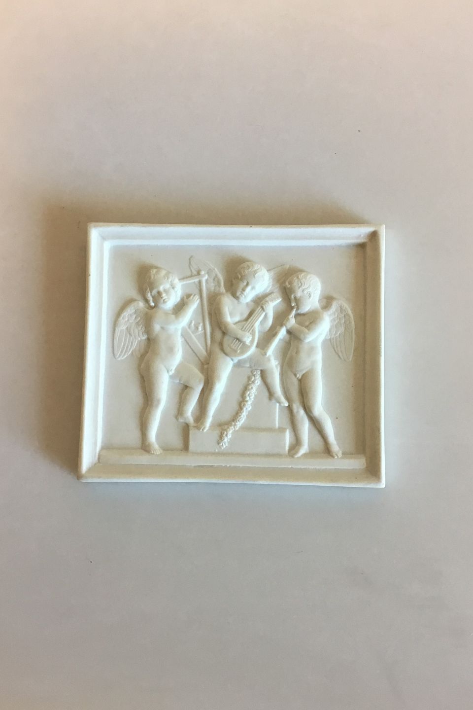 Royal Copenhagen Bisquit "Playing Angels". Copy of relief modeled in Rome in 1833. Measures 10.7 cm / 4 7/32 in. x 12.3 cm / 4 27/32 in.