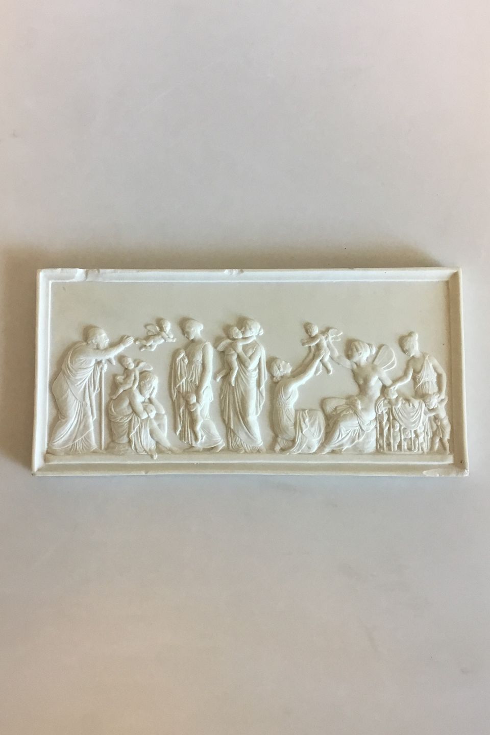 Bing & Grondahl Biscuit "The ages of Love" No 115. Copy og relief modeled in Rome in 1824. Measures 12 cm / 4 23/32 in. x 24.5 cm / 9 41/64 in. Several chips on Edge