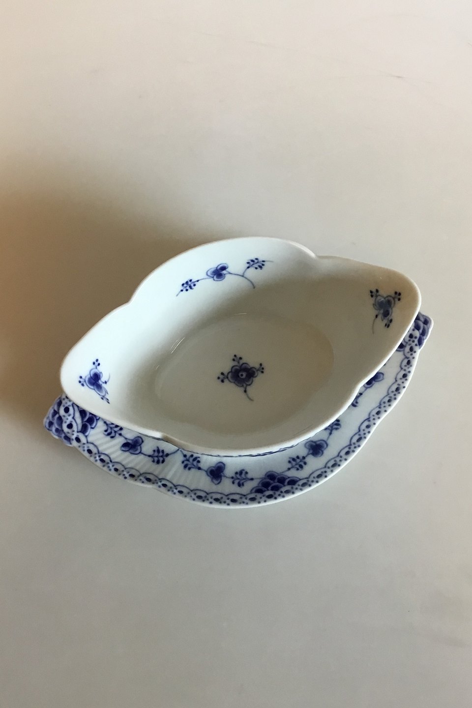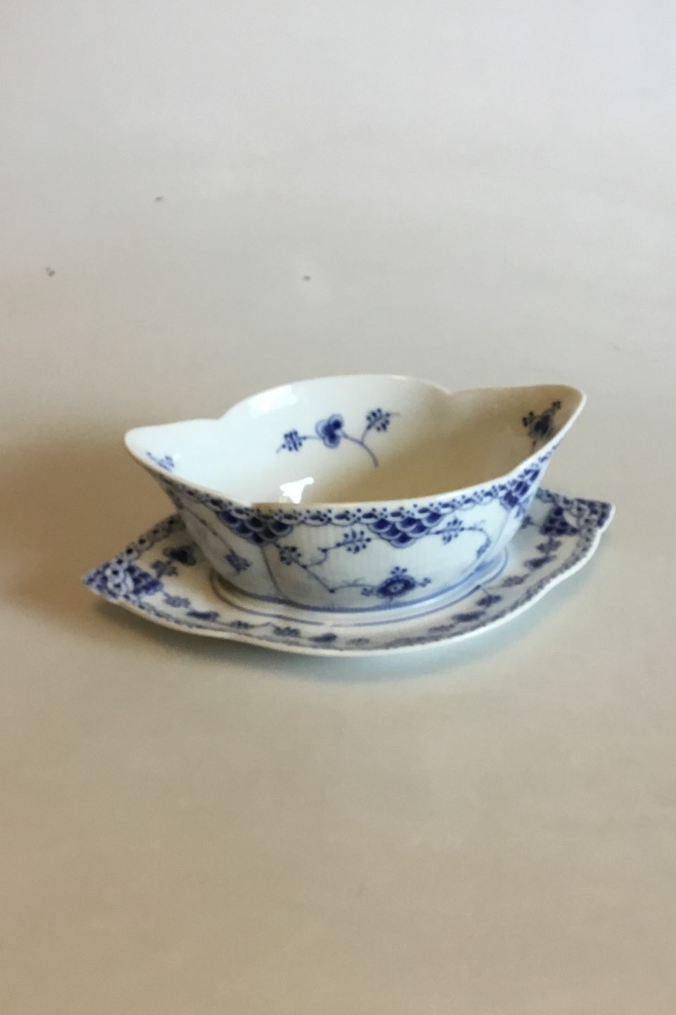 Royal Copenhagen Blue Fluted Half Lace Sauce Boat No 587. Measures 25 cm / 9 27/32 in.
