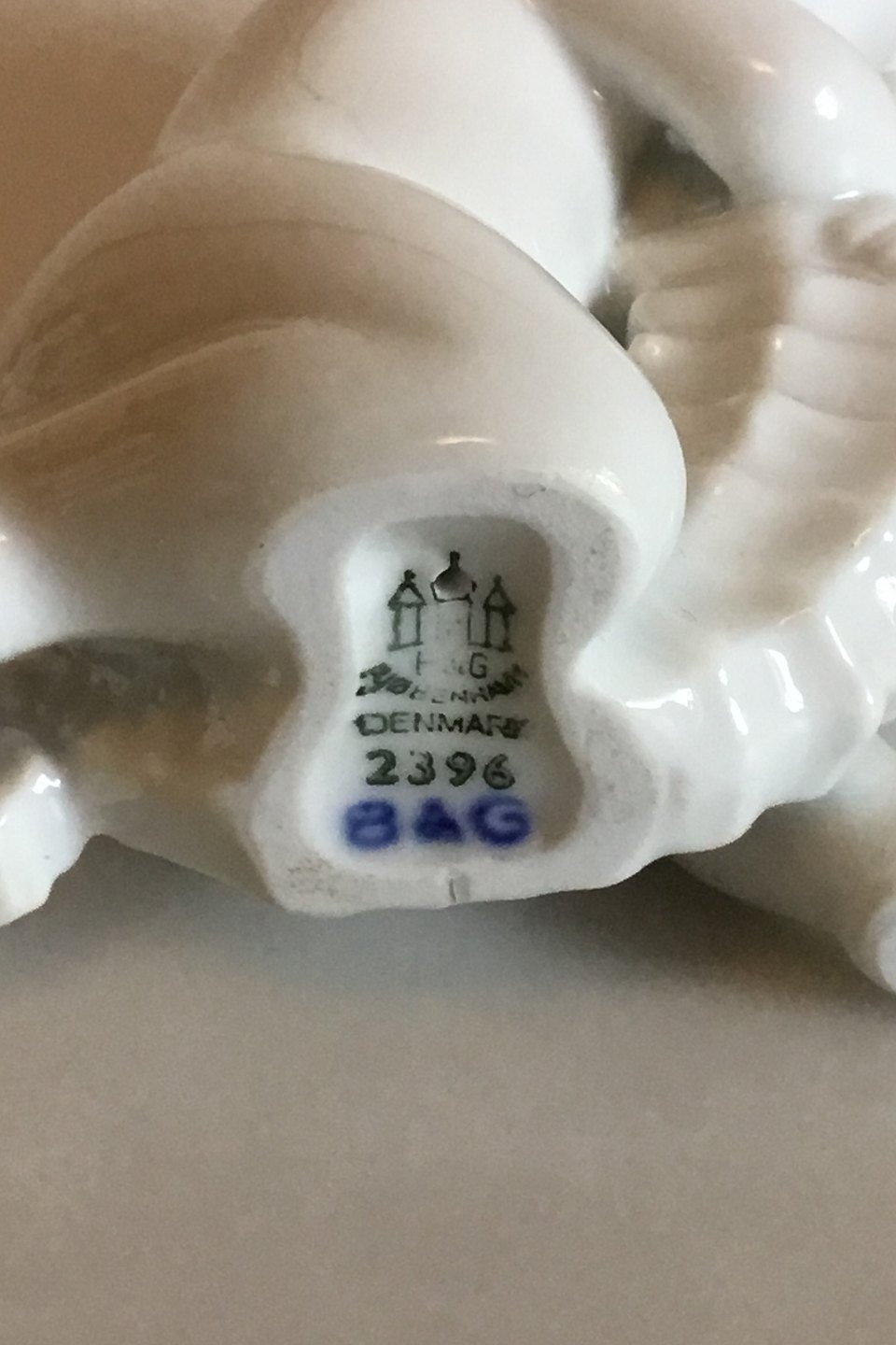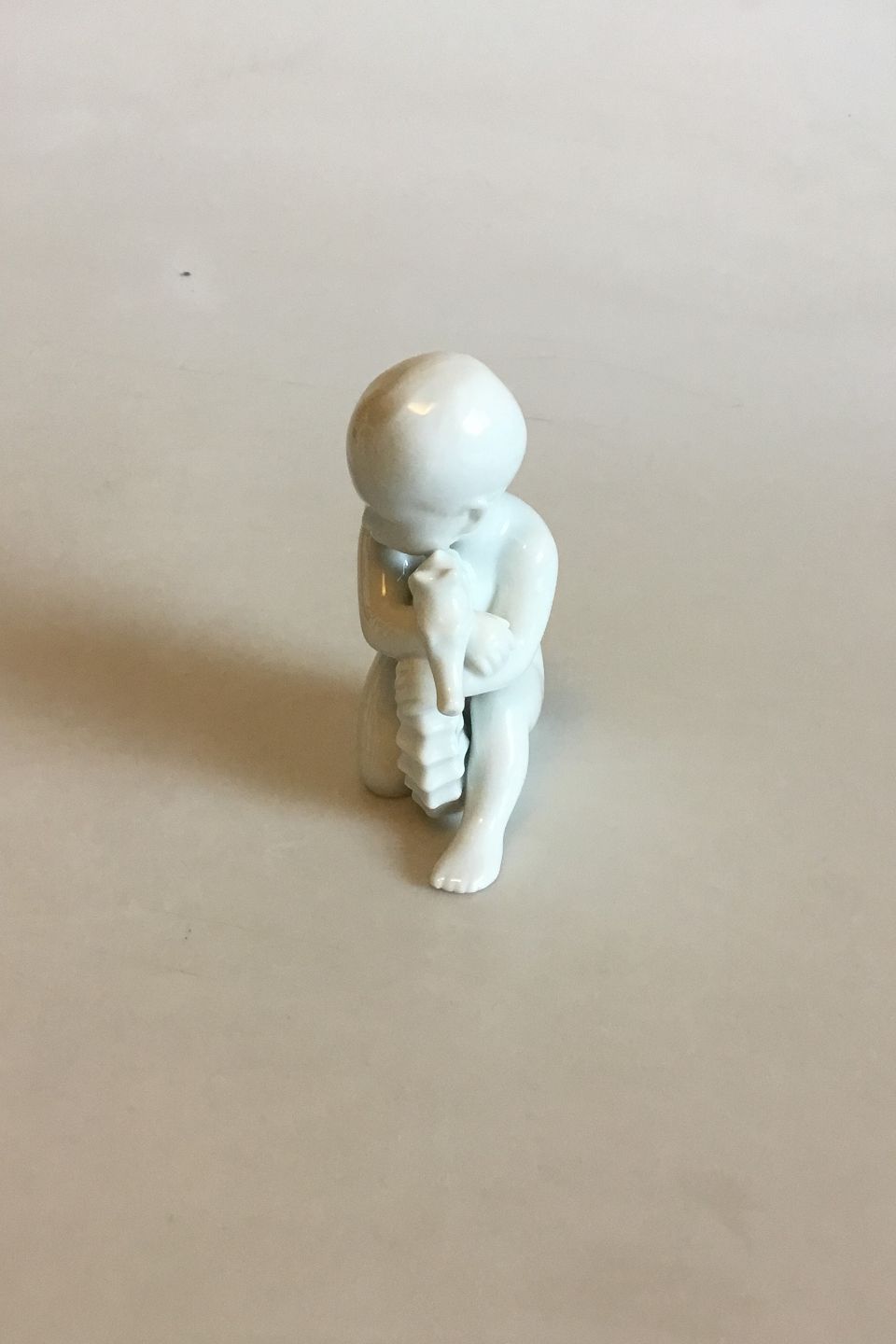 Bing & Grøndahl Blanc de Chine Figur af Havbarn med søhest i favn No 2396. Designet af Ebbe Sadolin. Måler 11 cm