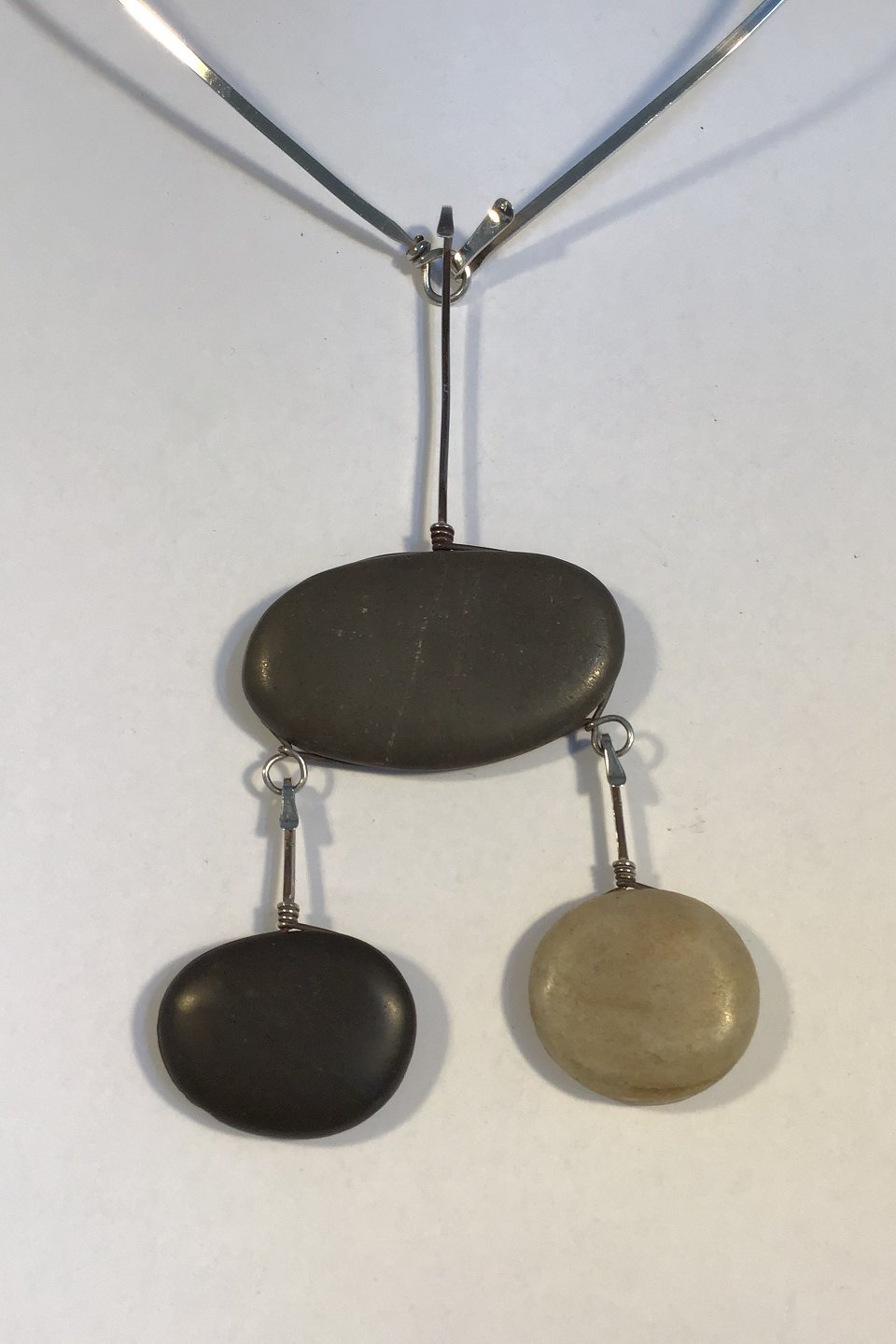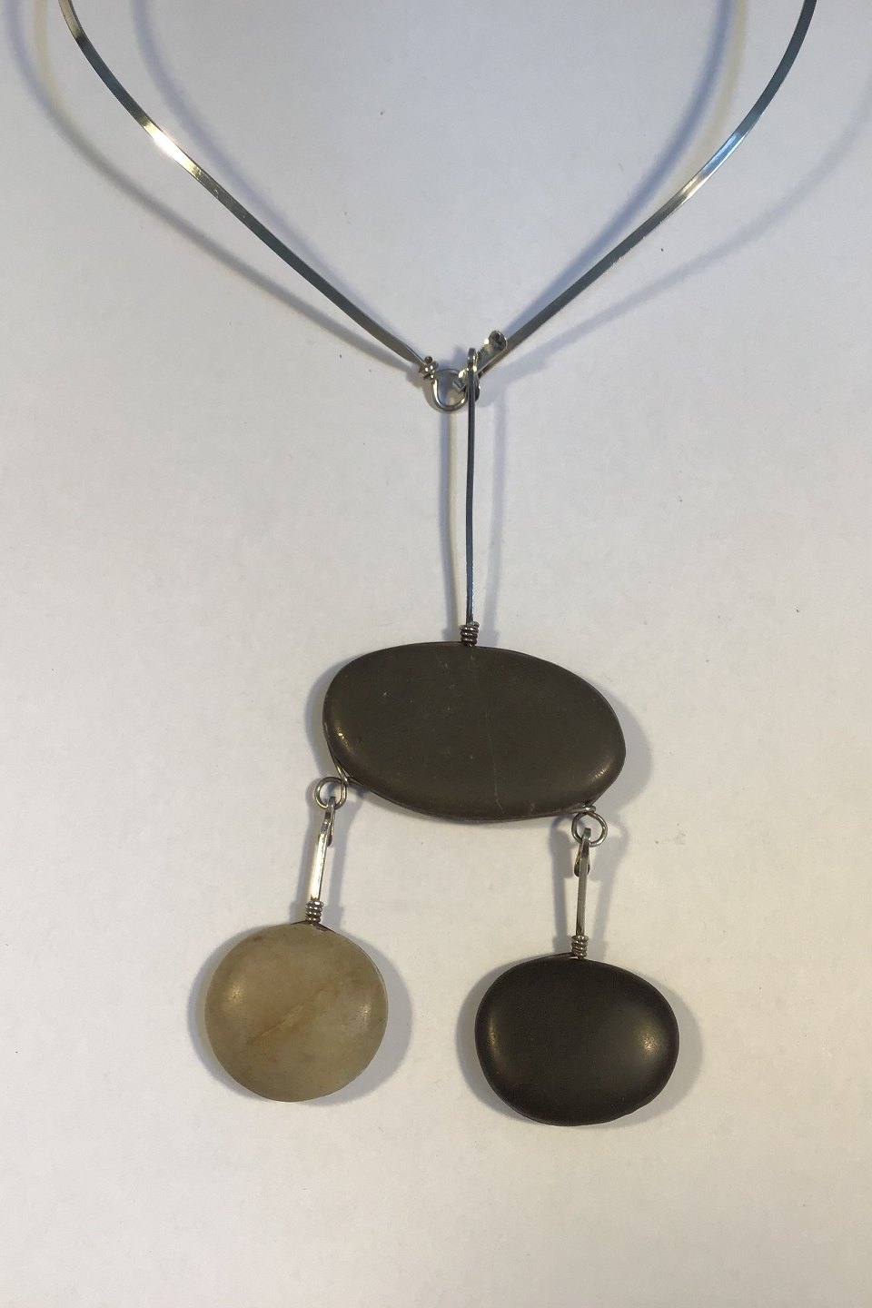 "Georg Jensen" Vivianna Torun Bülow-Hübe Silver Neck Ring Unique Personal Workshop Biot Neck Ring Diam 14.5 cm(5.70 in) Pendant 13.5 cm x 7.5 cm(5.31 in x 2.95 in)Combine Weight 64.6 gr/ 2.28 oz