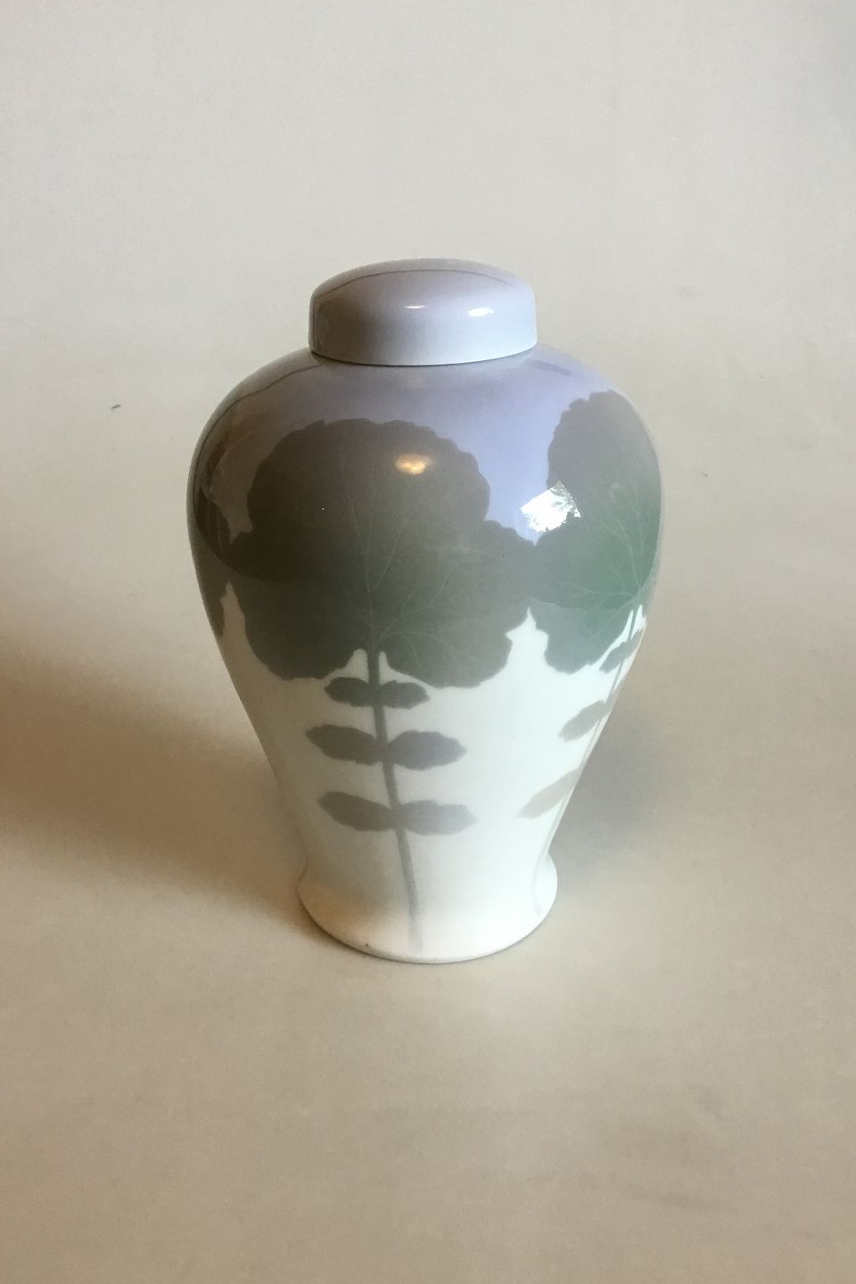 Royal Copenhagen Art Nouveau Lidded Vase with Leaf decoration No 312/53. Measures 21.5 cm / 8 15/32 in.