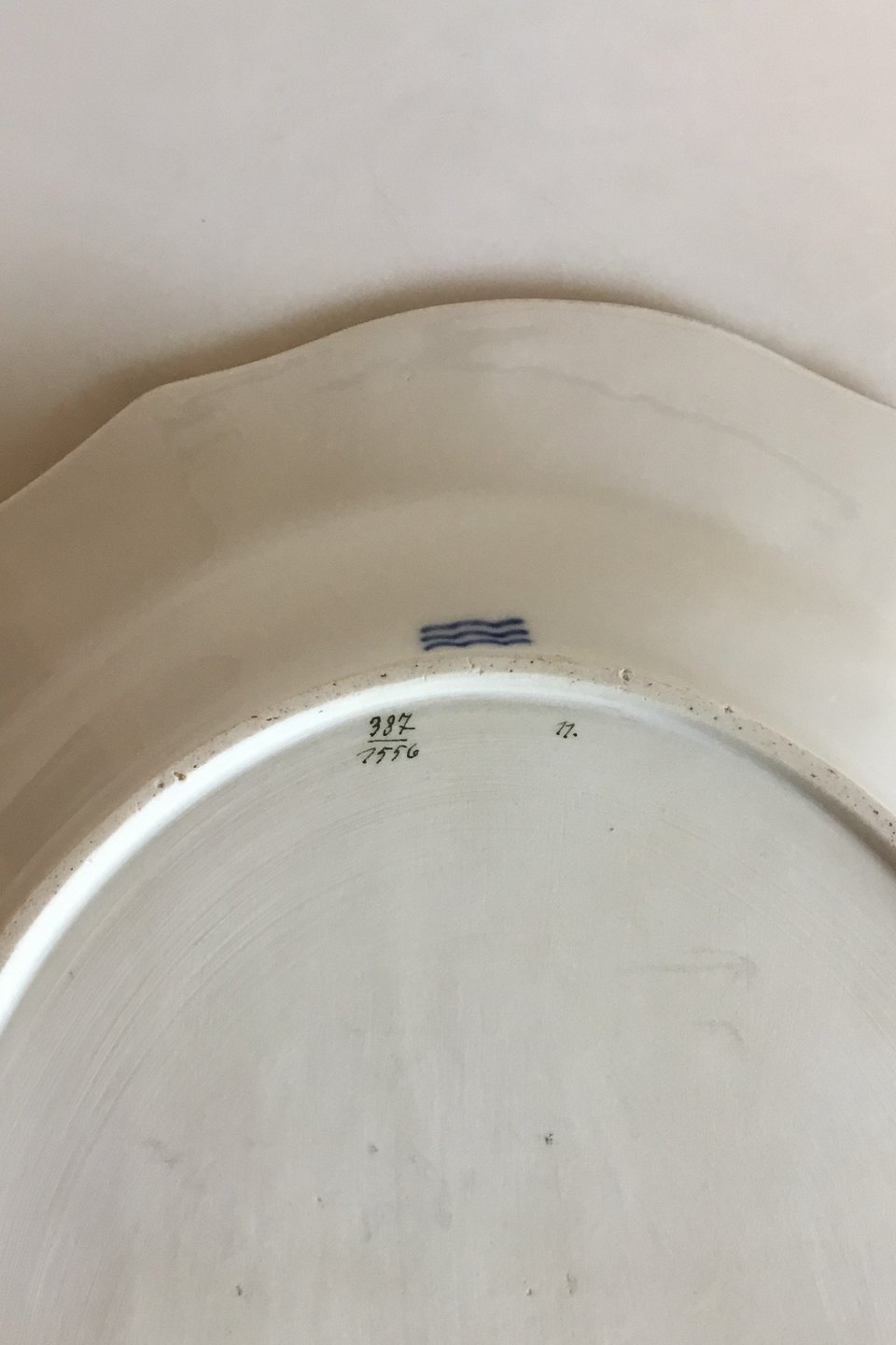 Royal Copenhagen White Curved with serrated Gold edge(Pattern 387/ Josephine) Oval Serving Dish No 1556. Measures 37 cm / 14 9/16 in. x 29.5 cm / 11 39/64 in.
