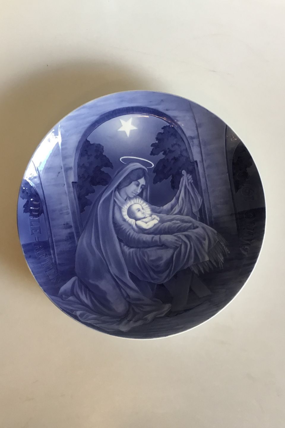 Bing & Grondahl Large Christmas Plate 1910 BG-L1910. A Child is born in Bethlehem. Measures 33 cm / 12 63/64 in.