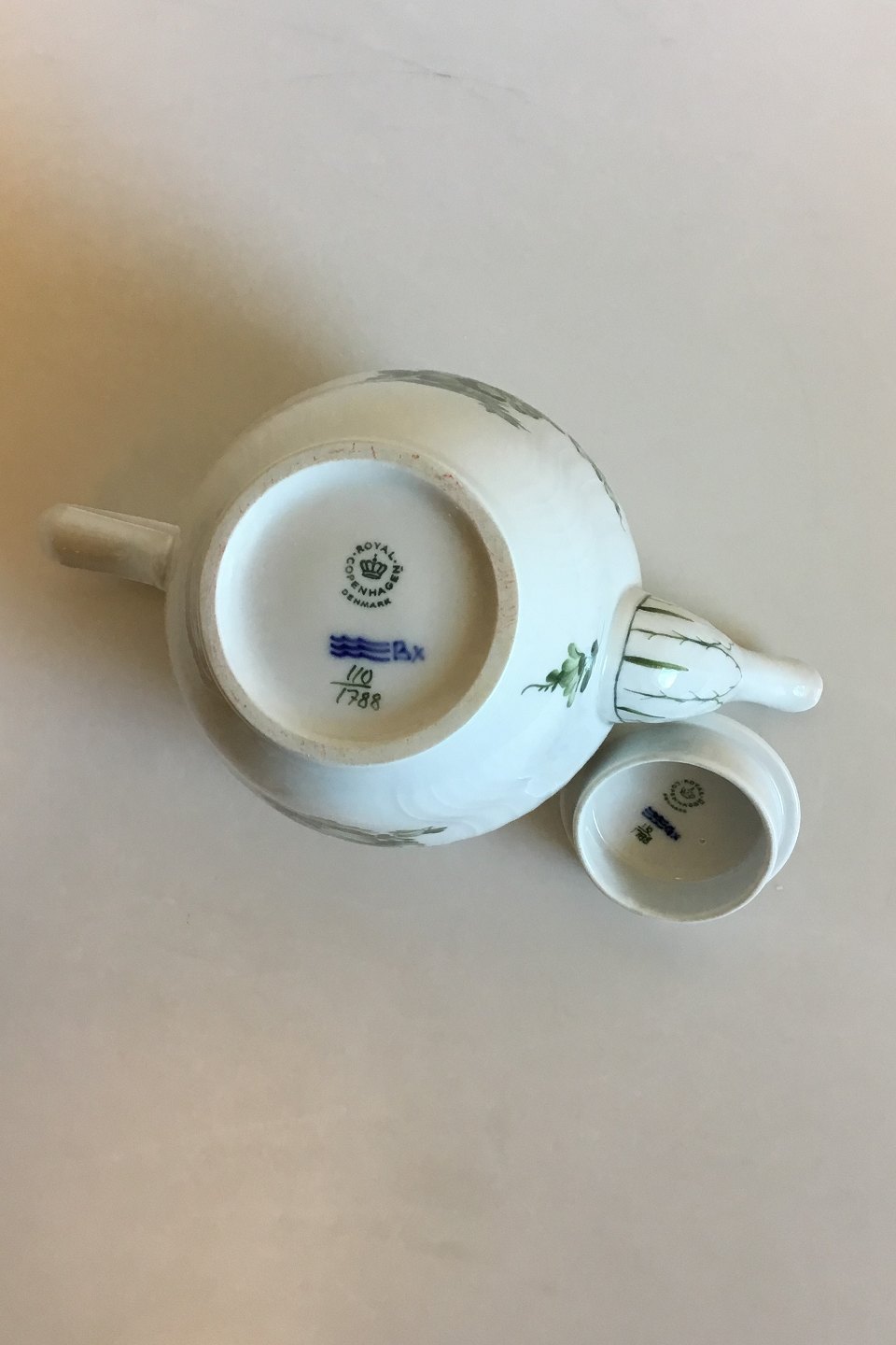 Royal Copenhagen Green Flower Curved Tea Pot No 1788