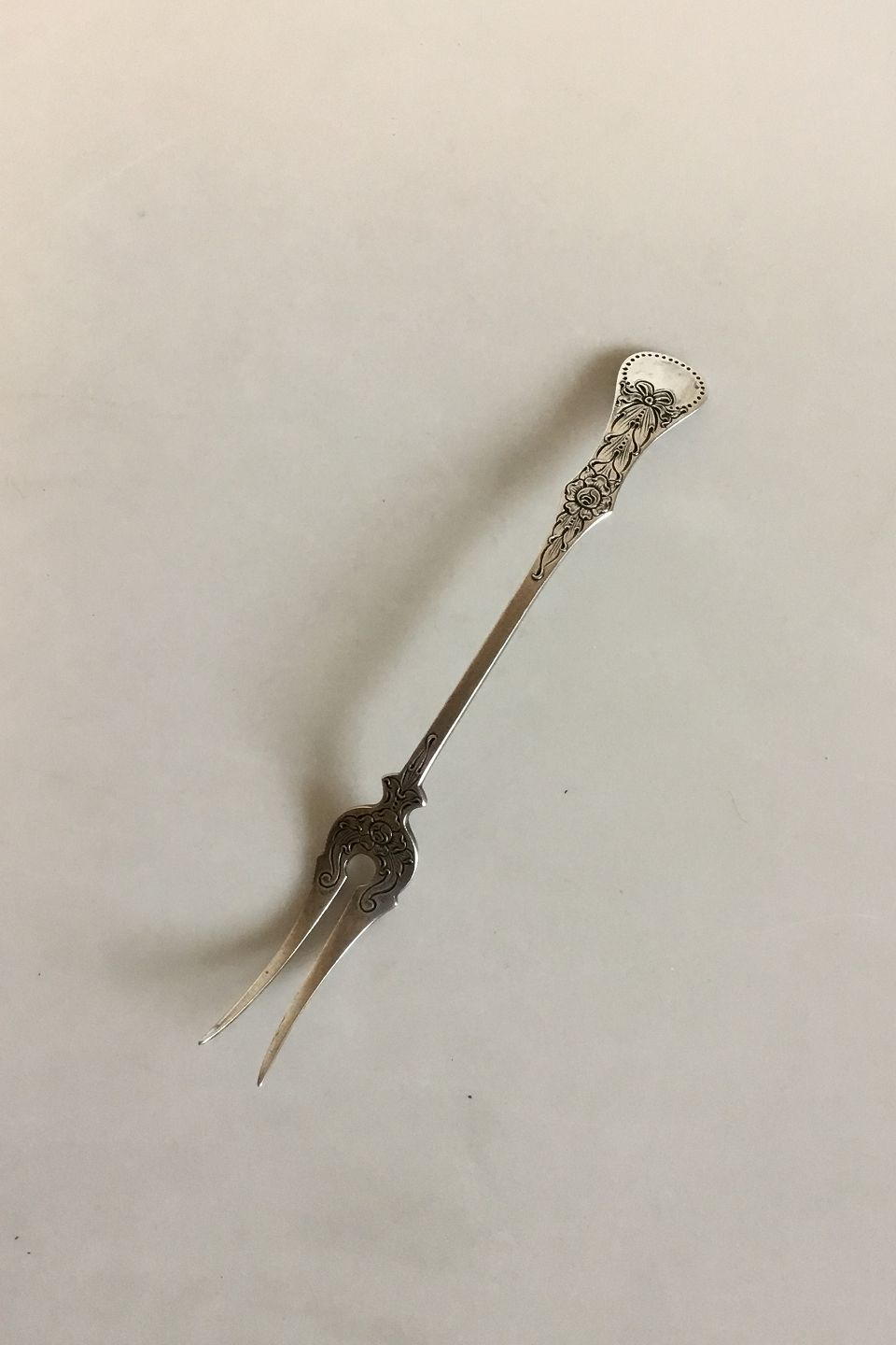 Halvor Finstad 1823-1913 sølv serveringsgaffel, Norge.