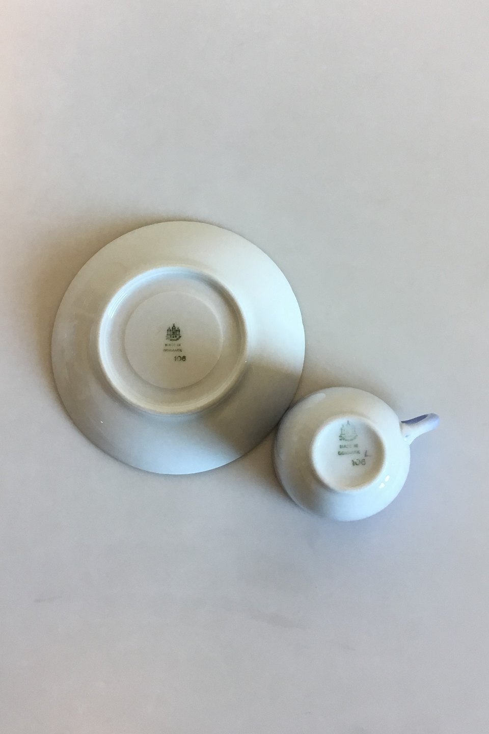 Bing og Grøndahl Måge med Guld Mokkakop med underkop No. 106 / 461. Måler Kop: 6 x 5,8 cm (2 23/64 x 2 9/32 in). Underkop No. 106 / 463: 11,8 cm (2 9/32 in).