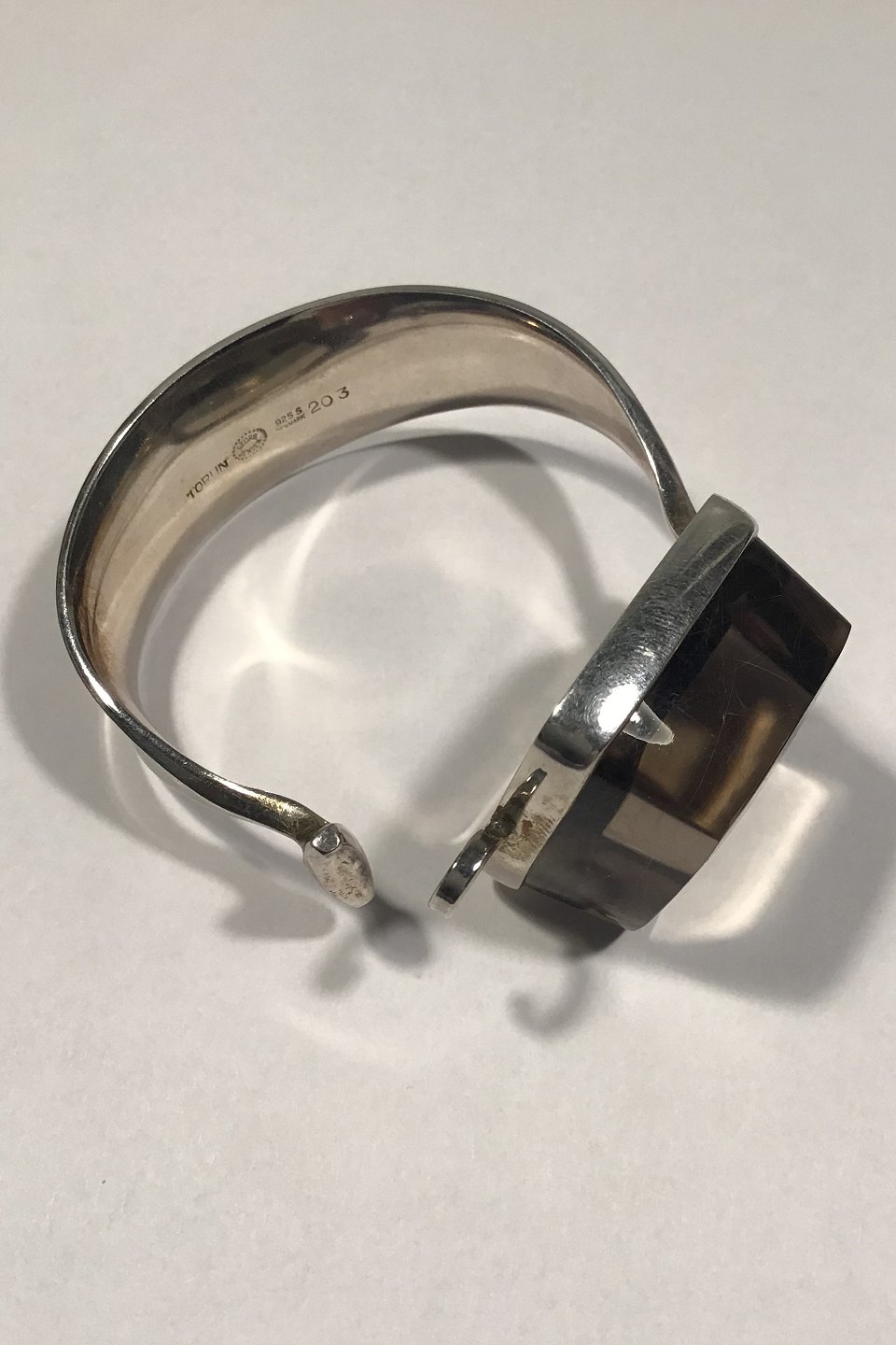 Georg Jensen Sterling Silver Smoke-coloured Rutile Quartz Arm Ring No 203 Torun Arm ring inside diam5.8 cm(2 9/32 in) Stone 3.2 cm x 3.2 cm(1 17/64 in x 1 17/64 in)Weight 87.9 gr/3.10 oz
