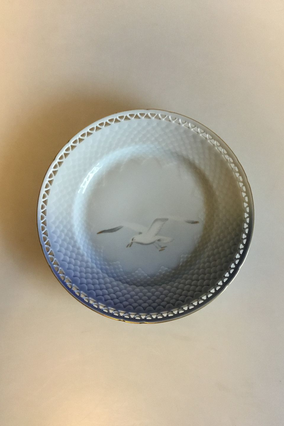 Bing & Grondahl Seagull with Gold Lunch Plate with pierced border No 326.5. Measures 21.5 cm / 8 15/32 in.