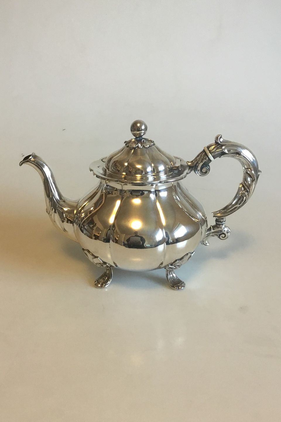 Cohr Silver Fluted teapot. Measures 25 cm x 17.5 cm. Weighs 680 grams680 g / 24.0 oz.