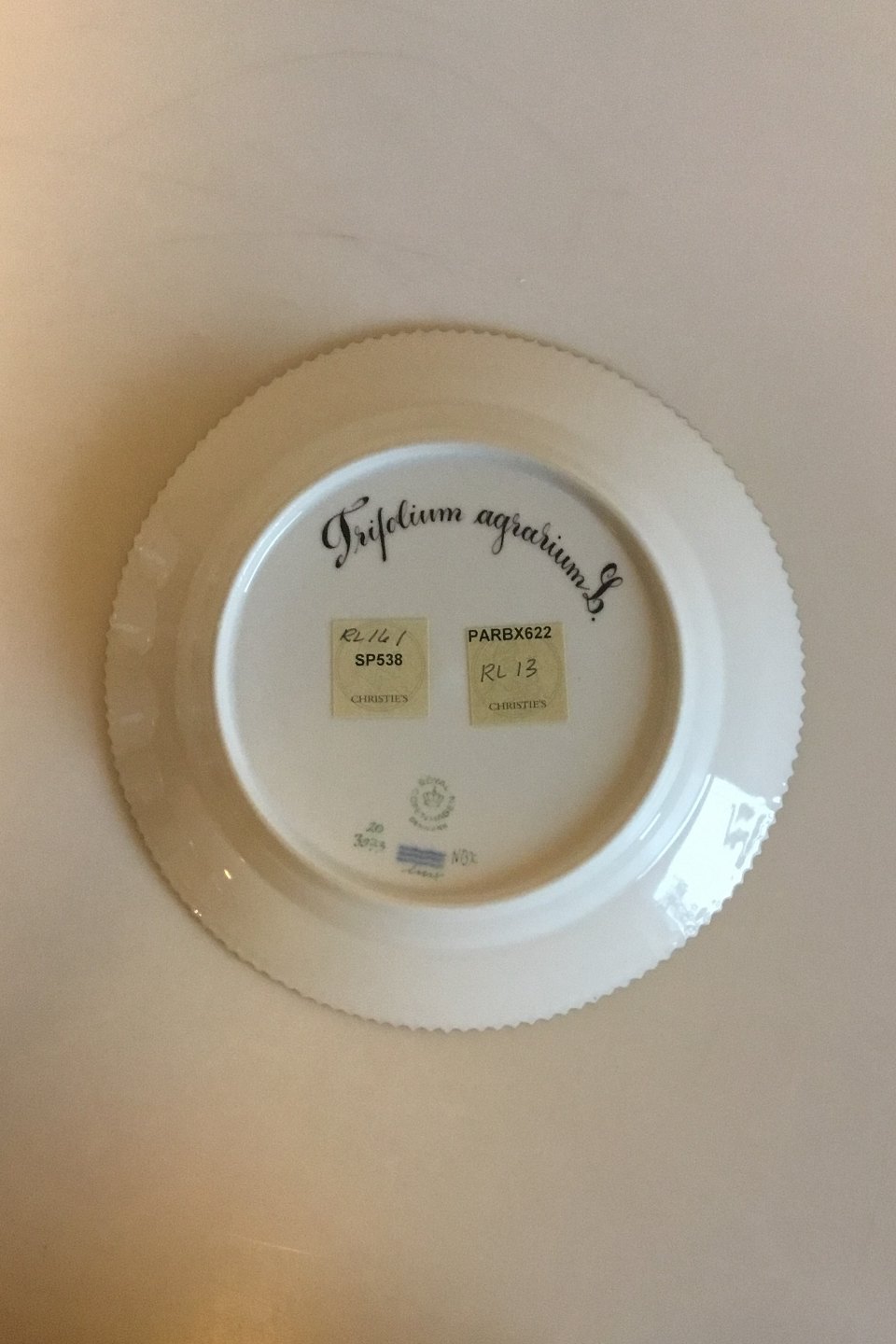 Royal Copenhagen Flora Danica Salad Plate No 20/3573. Latin name: Trifolium agrarium L. Measures 19.2 cm / 7 9/16 in.(Chipped)