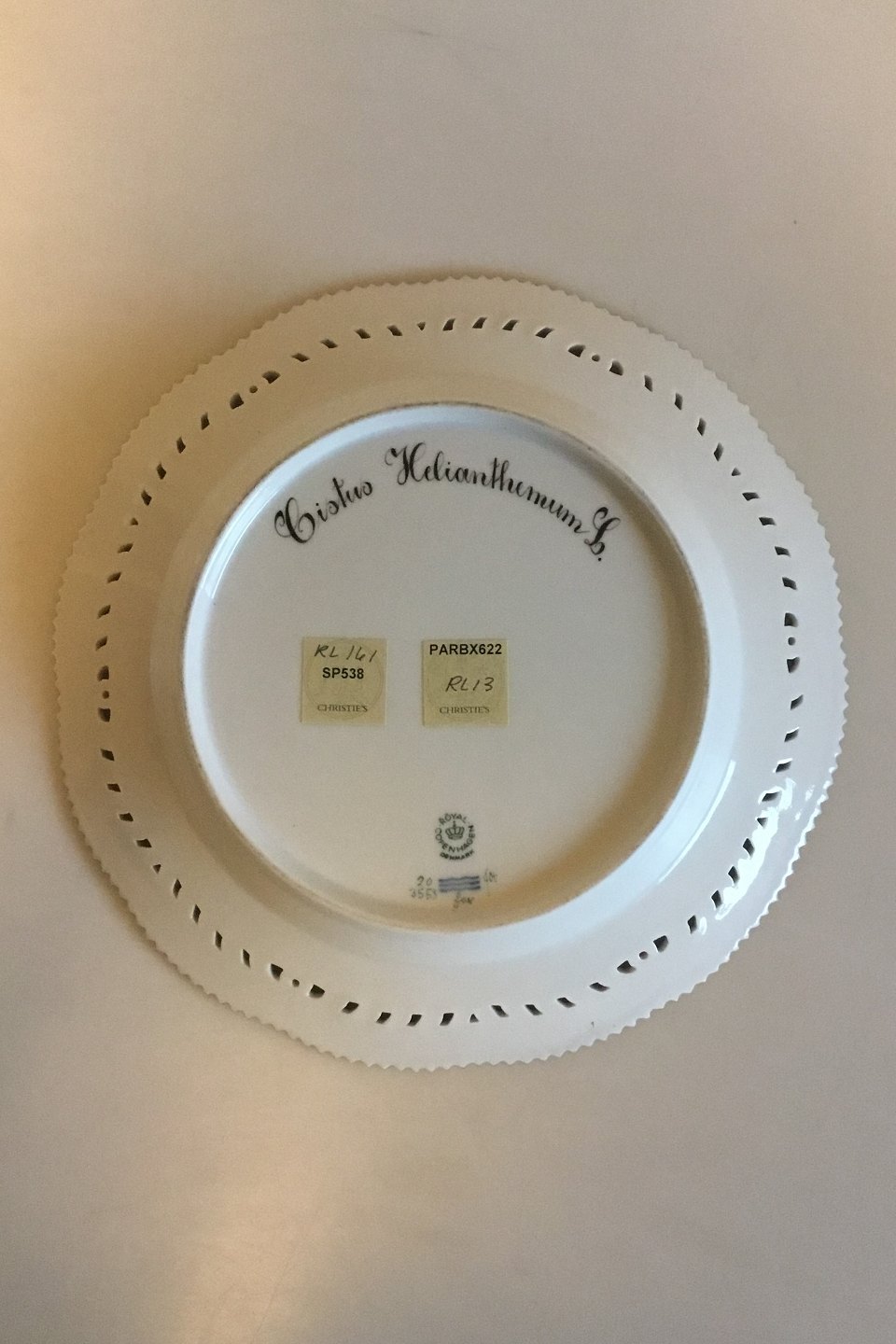 Royal Copenhagen Flora Danica Plate with pierced border No 20/3553. Latin name: Cistus Helianthemum L. Måler 25.5 cm / 10 3/64 in.