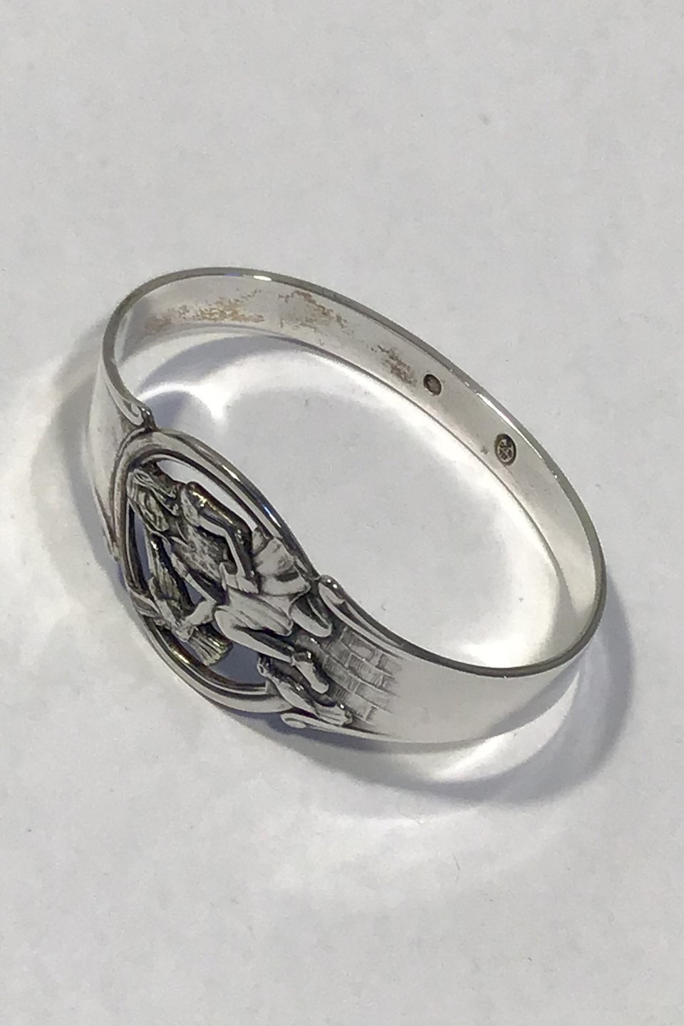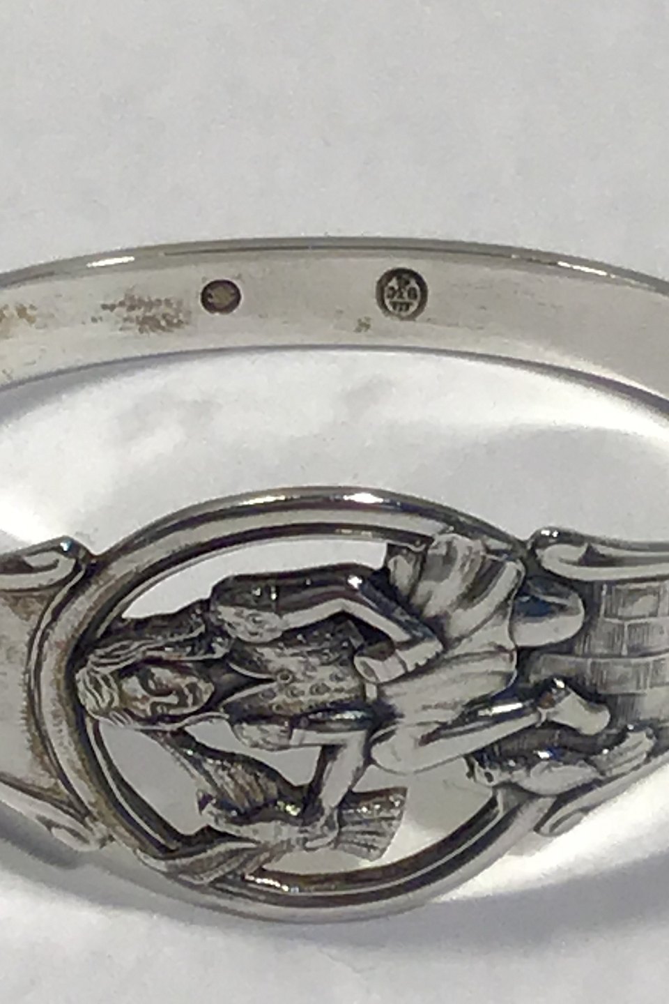 Danish Silver Napkin Ring (Girl with Pidgeons) Measures 5 cm x 3.3 cm(1 31/32 in x 1 19/64 in) Weight 15 gr/0.53 oz