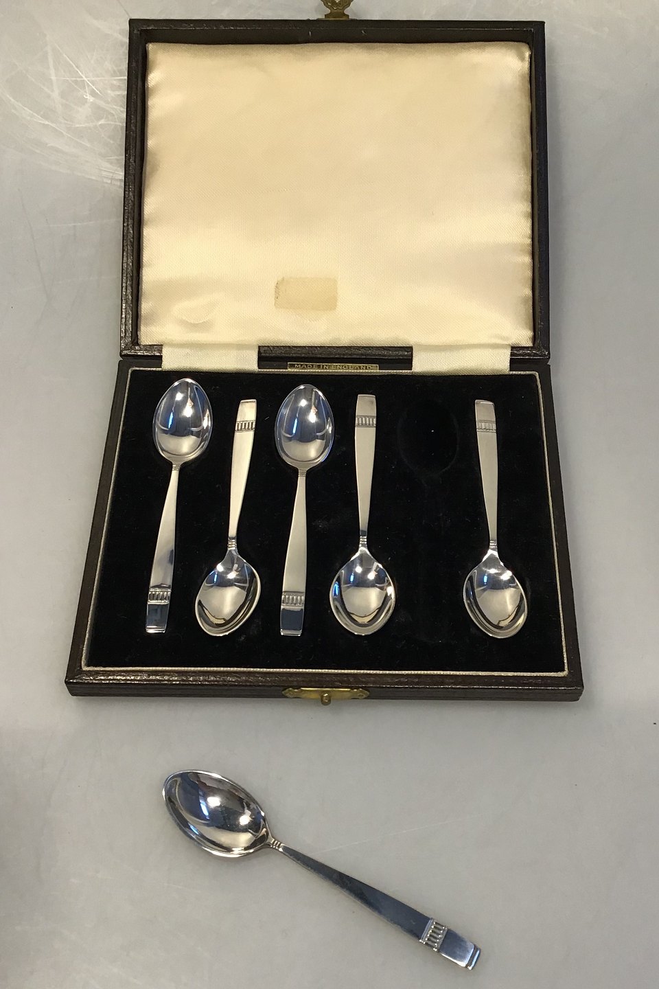6 Engelske Sterling Sølv Kaffeskeer i præsentationsæske Barker Brothers Silver Ltd Birmingham Skeen måler 9.5 cm