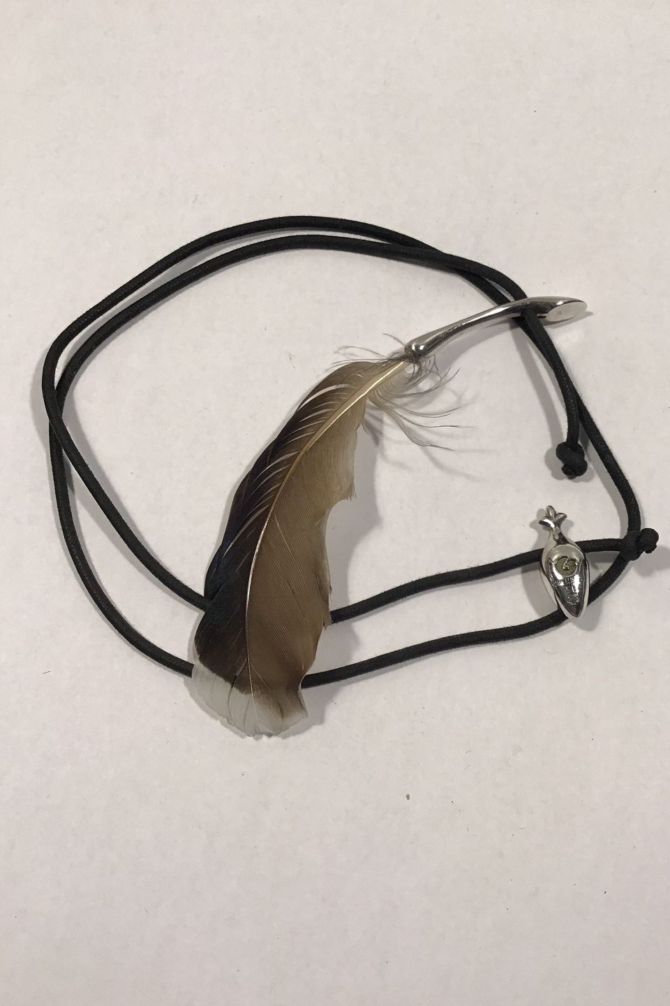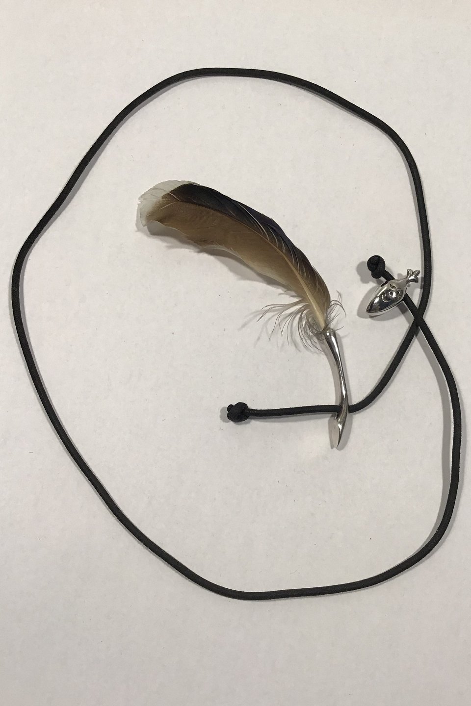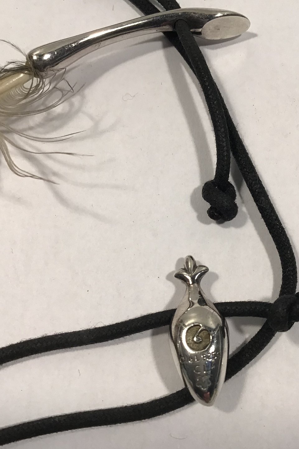 Ole Lynggaard Bomuldshalssmykke med Sterling Sølv Vedhæng hhv maske og fjer Måler L 64 cm Samlet vægt 14 gr