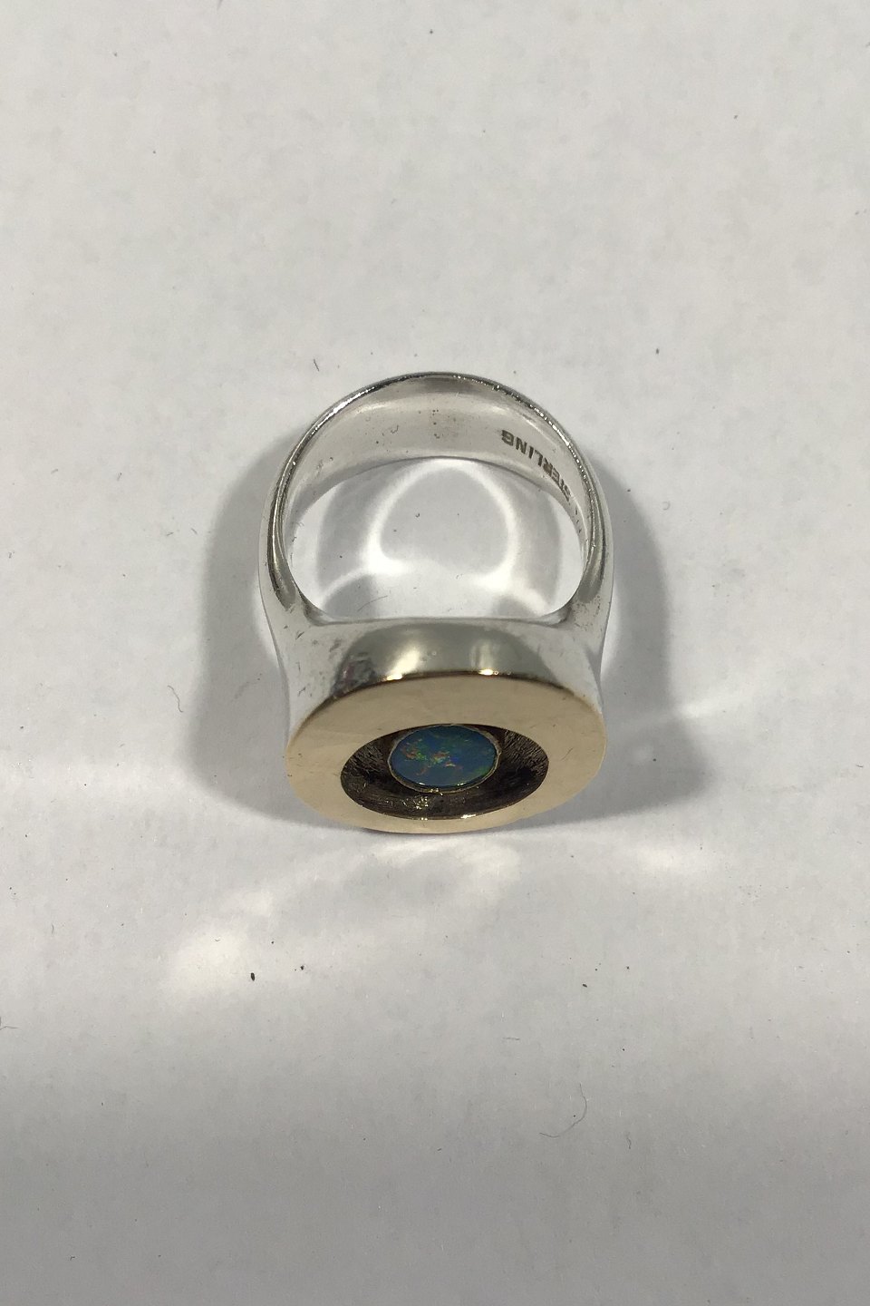 Ole Waldemar Jacobsen Sterling Silver Ring decorated with gold and opal, Handmade Ring size 52 / US 6 Weight: 14.1 gr/0.50 oz