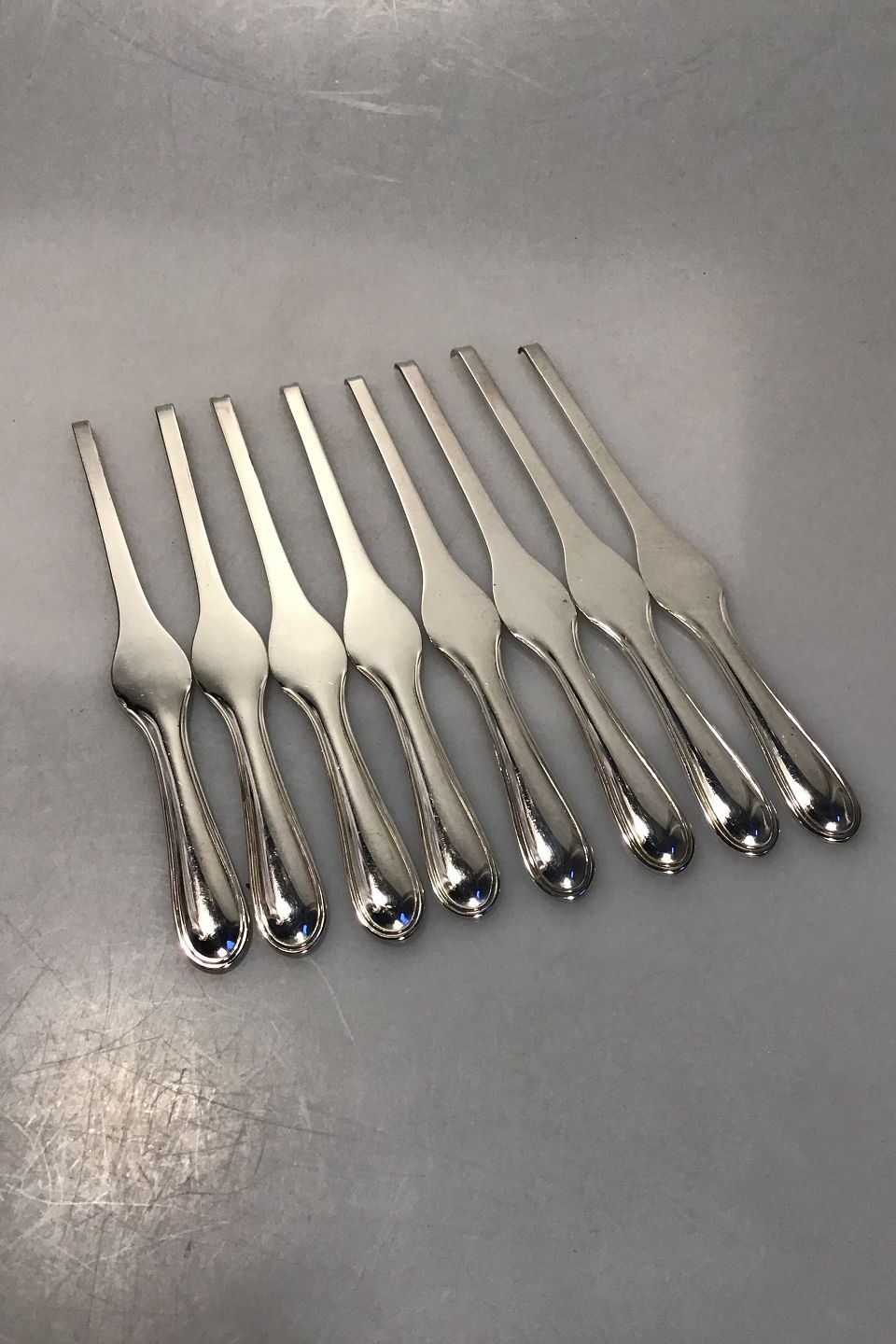 W&S Sørensen Dobbeltriflet(Old Danish) Silver Lobster Forks Set (8) L 19.3 cm(7 19/32 in)