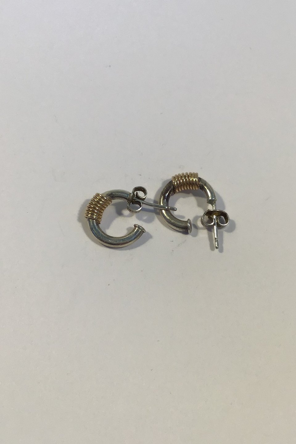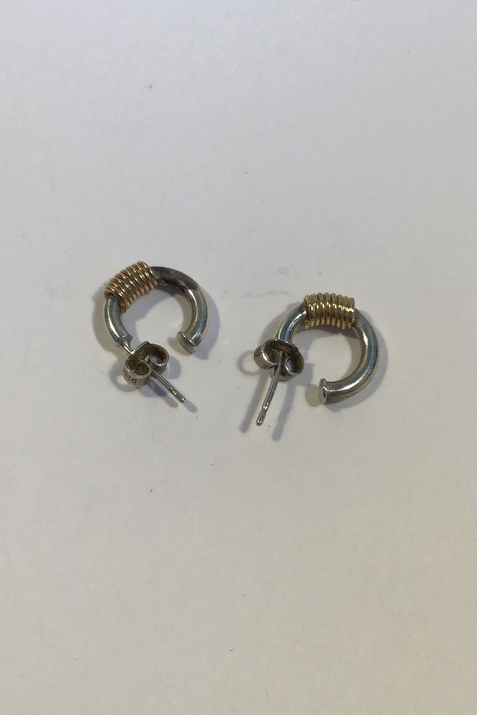 H Siersbøll Sterling Sølv Ørestikker m/guldtråd Måler Diam 1.4 cm Samlet Vægt 3.6 gr