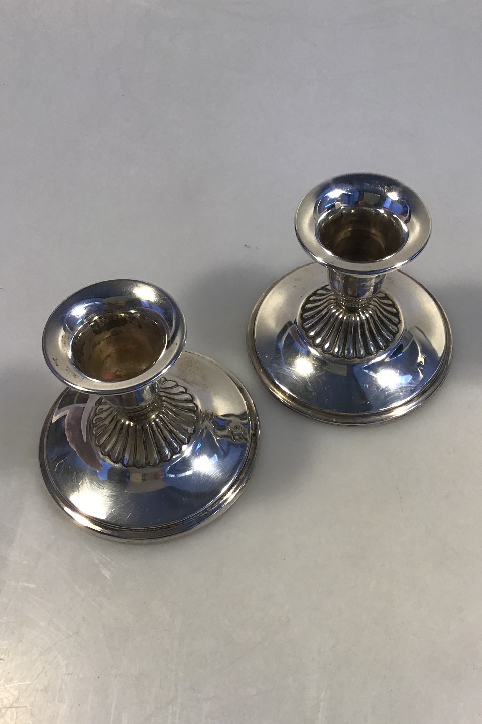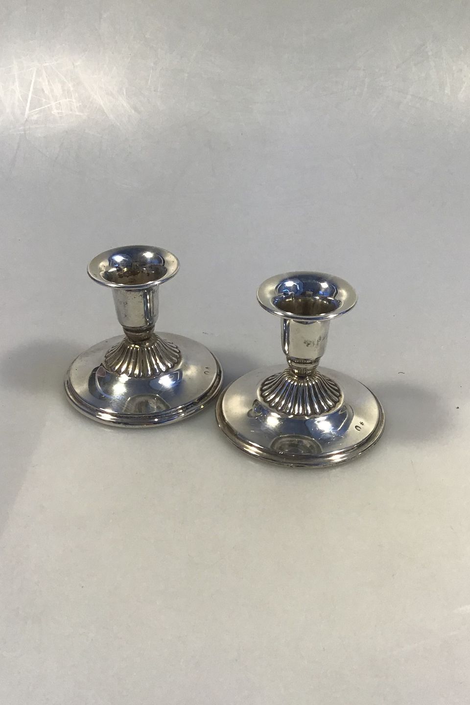 Set Silver Candlesticks(2) Measures Diam 8 cm H 6.5 cm(Diam 3 5/32 in H 2 9/16 in)