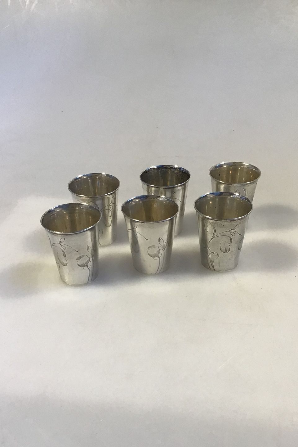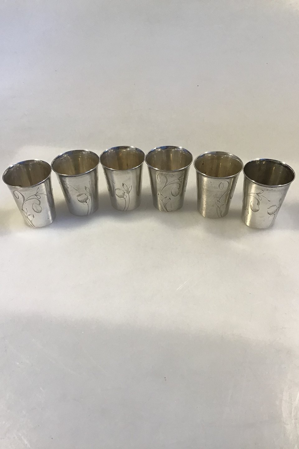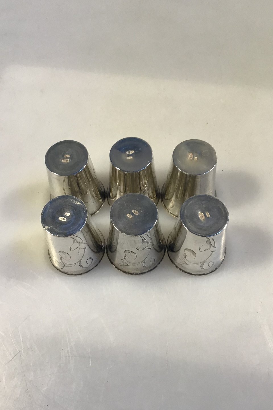 Russian Silver Drinking Cups Set (6) Floral Decoration Measures 4.5 cm(1 49/64 in) Combined Weight 99 gr/3.49 oz(Engraved AF 24/11 12)