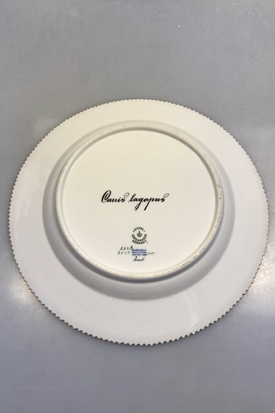 Royal Copenhagen Flora Danica Animal Dinner Plate No 239/3549.Latin Name Canis Lagopus Measures 25.5 cm (10 3/64")