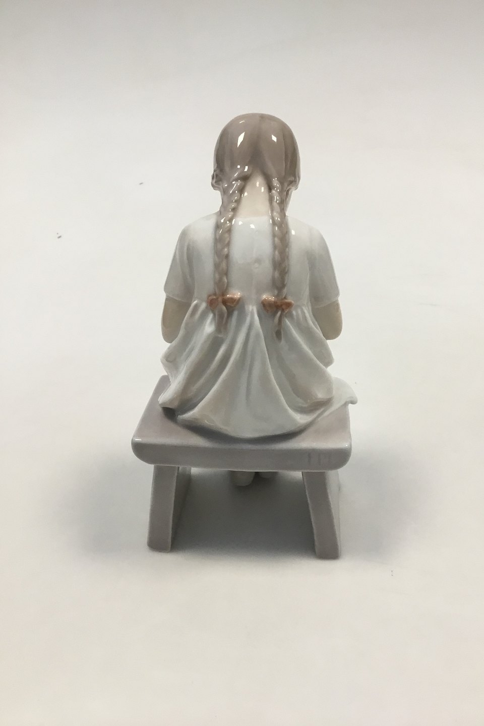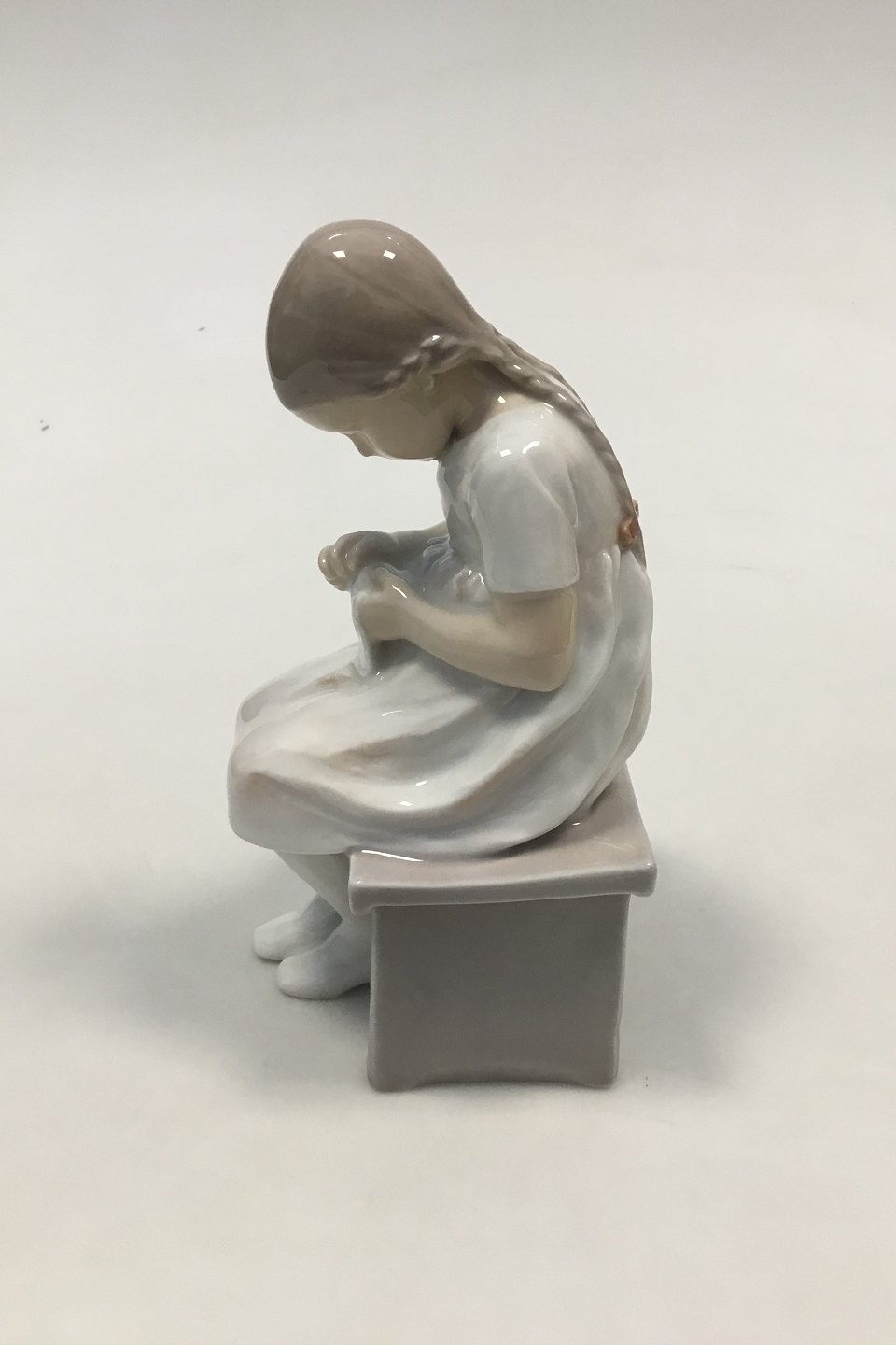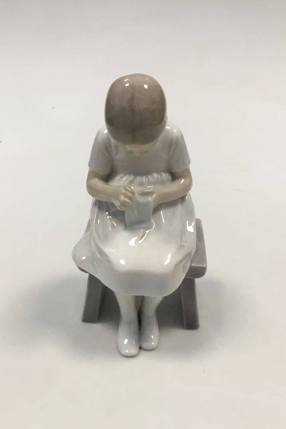 Bing & Grøndahl Figur af broderende pige på skammel No 1879. Måler 18 cm