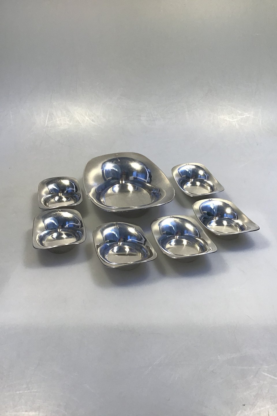 Watrous Mfc Co Sterling Sølv Skålsæt(6+1) Måler Stor skål 11cm x 16.3 cm Lille skål 5.5 cm x 8.7 cm(Gravering)
