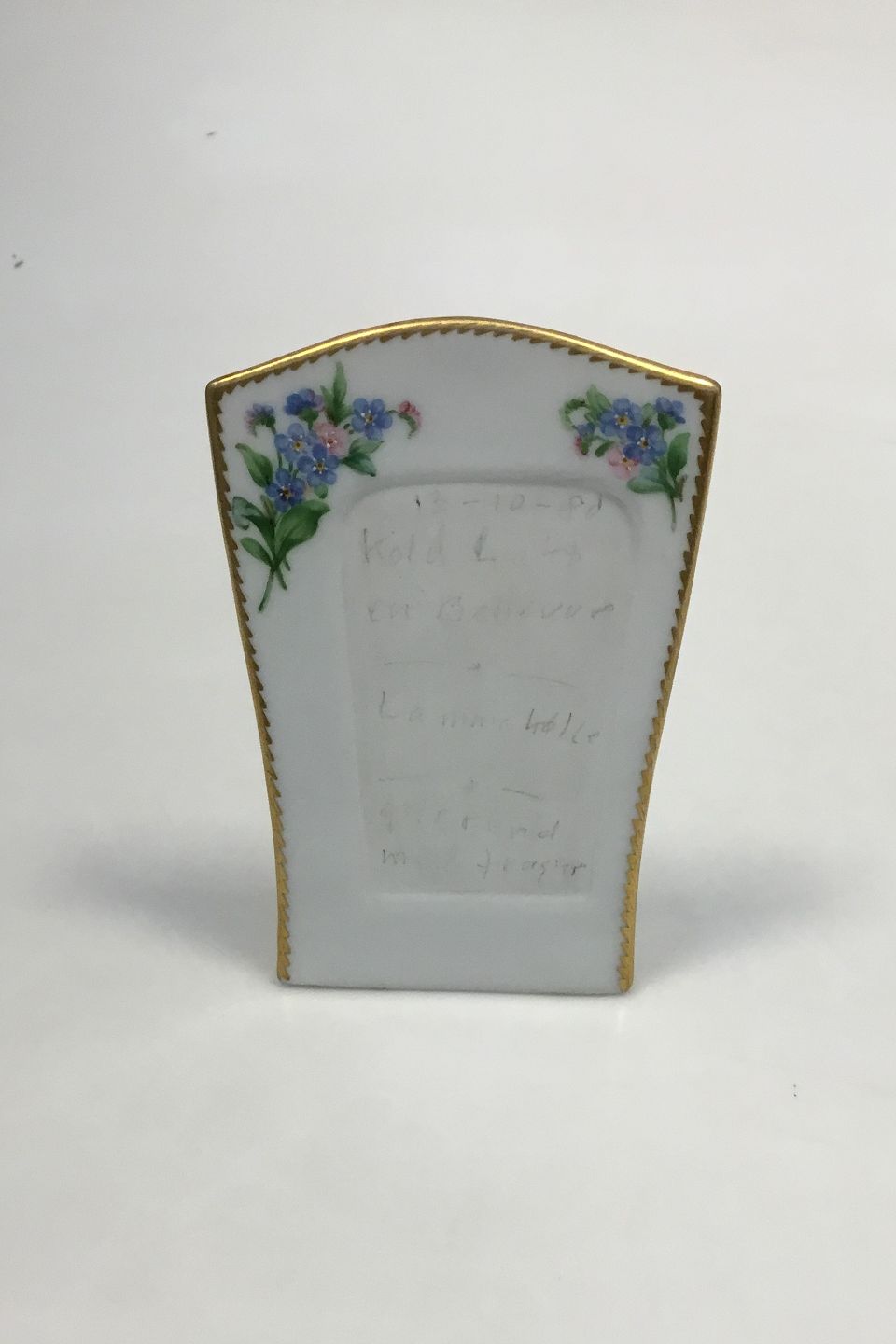 Royal Copenhagen Menu sign for table No 891. Decorated with Flowers, Gold edge and Goldsmiths. Measures 13 cm / 5 1/8 in.