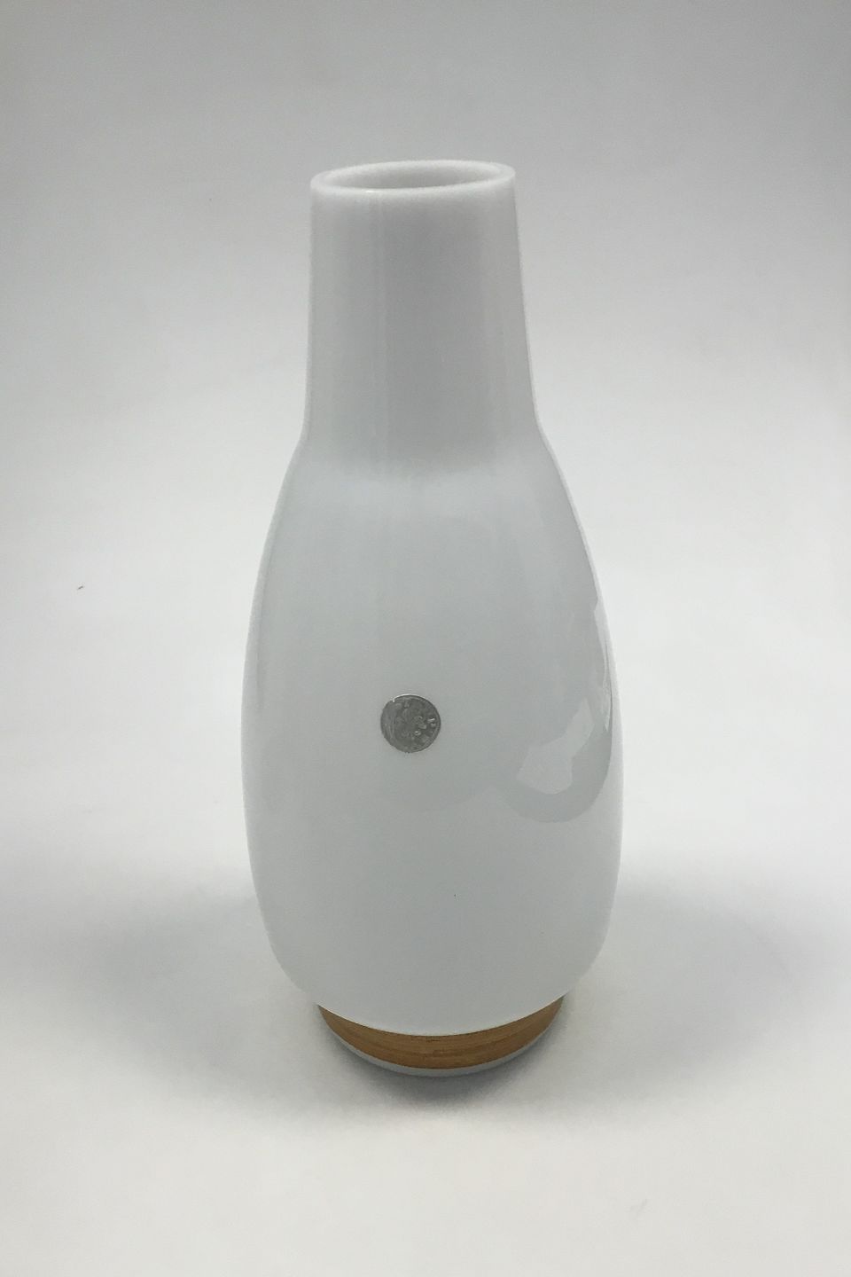 Kastrup Glassworks Opaline Vase with bamboo wrapping. Jacob E. Bang 1957. Measures 33 cm / 12 63/64 in.