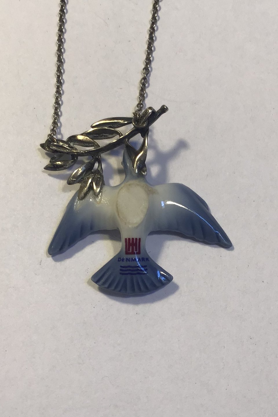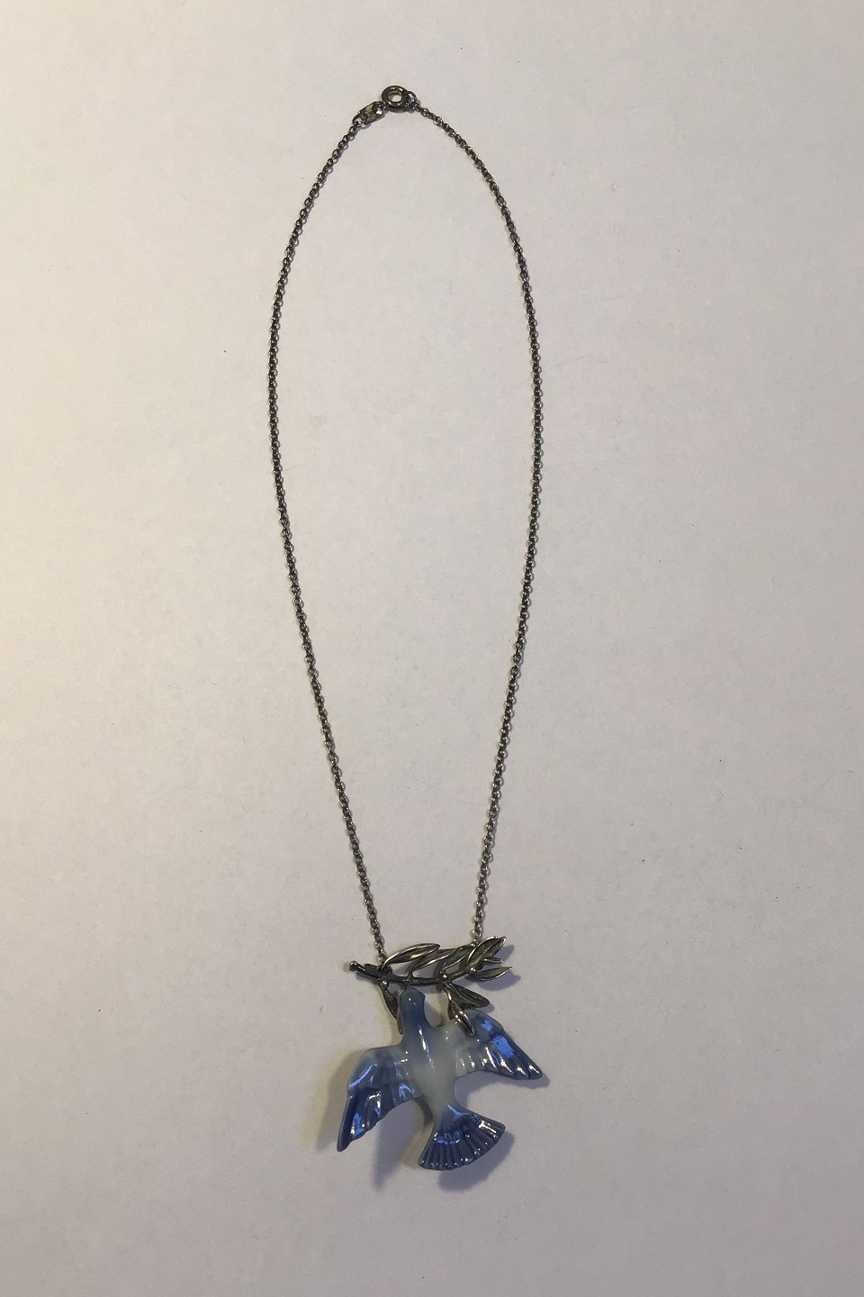 Royal Copenhagen Necklace with Sterling Silver foliage and Dove of Porcelain Measures 40 cm(15 3/4 in)