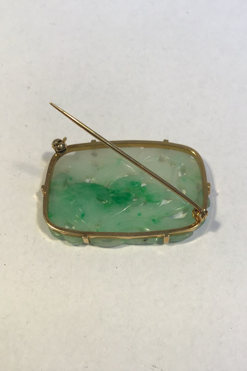 A Dragsted 18 K Gold Brooch with Jade (Bird and foliage) Measures 4.1 cm x 2.8 cm( 1 39/64 in x 1 7/64 in) Weight 10.7 gr/0.34 oz