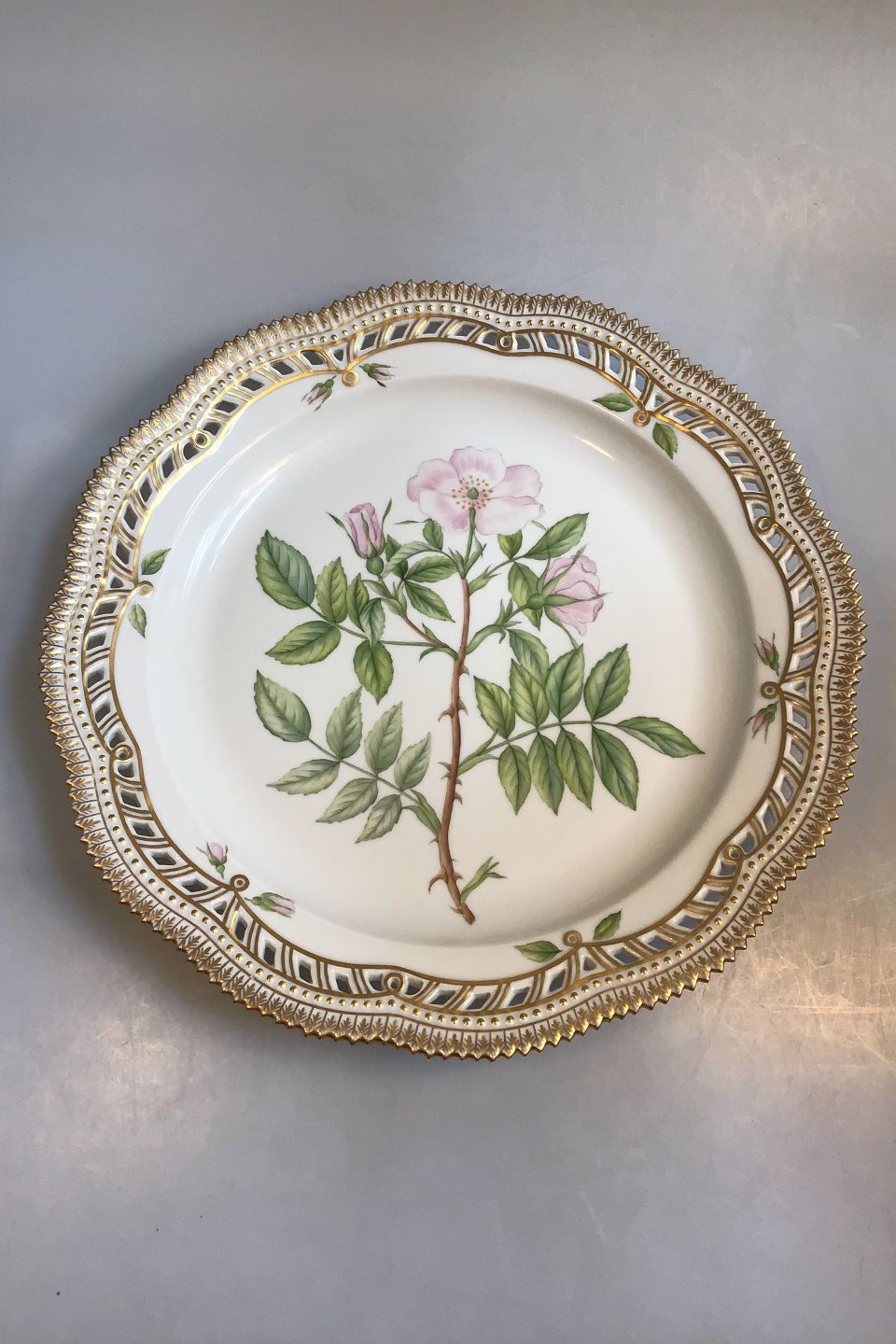 Royal Copenhagen Flora Danica Large Round Tray No 20/3528 Latin Name: "Rosa Villosa Horn" Measures Diam 33,5cm(13 1/4 in)