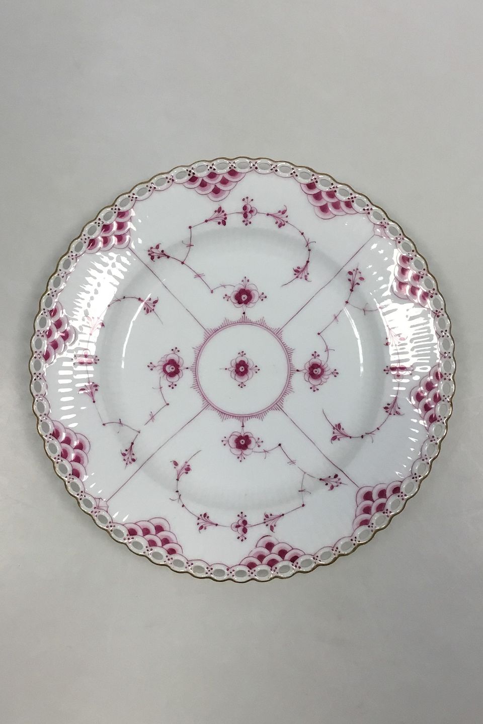 Royal Copenhagen Blue Fluted Red Ruby/Pink with Gold Edge Full lace Lunch Plate No 2/1084. Measures 23 cm / 9 1/16 in.